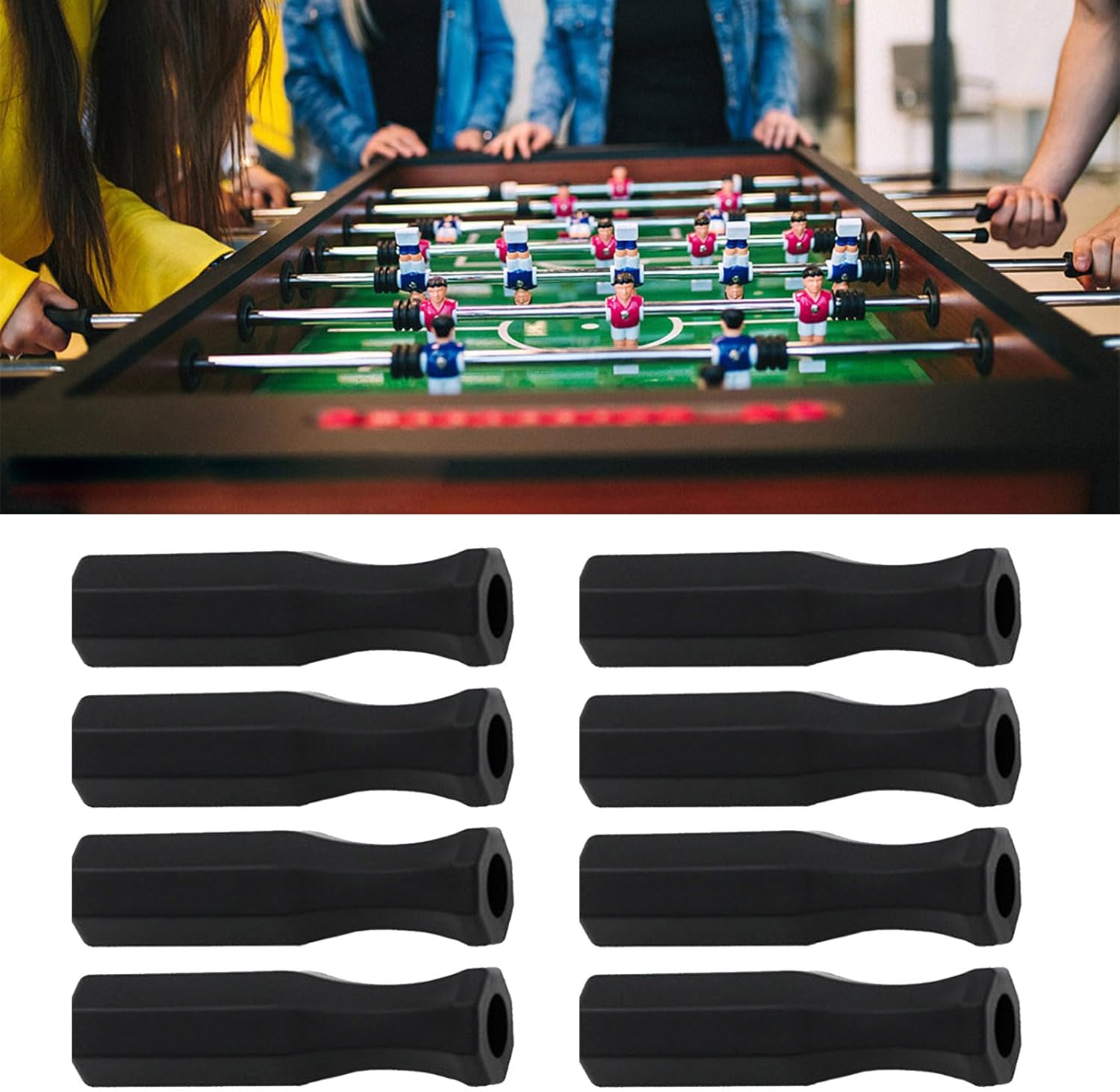 Realizzato con queste maniglie affidabili su tavoli da calcio balilla standard Questi 8 manici per calcio balilla offrono una presa comoda e un controllo preciso, migliorando i tuoi giochi Molto adatto per gli appassionati di calcio balilla di tutte le età, dai principianti ai giocatori esperti Ideale per riunioni di famiglia, feste e tempo libero, aggiunge un aspetto divertente all'attività sociale Migliora facilmente le tue impostazioni di calcio balilla con questi manici, offrendo ore di intrattenimento