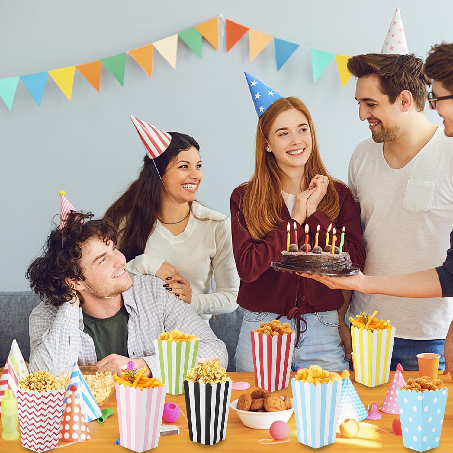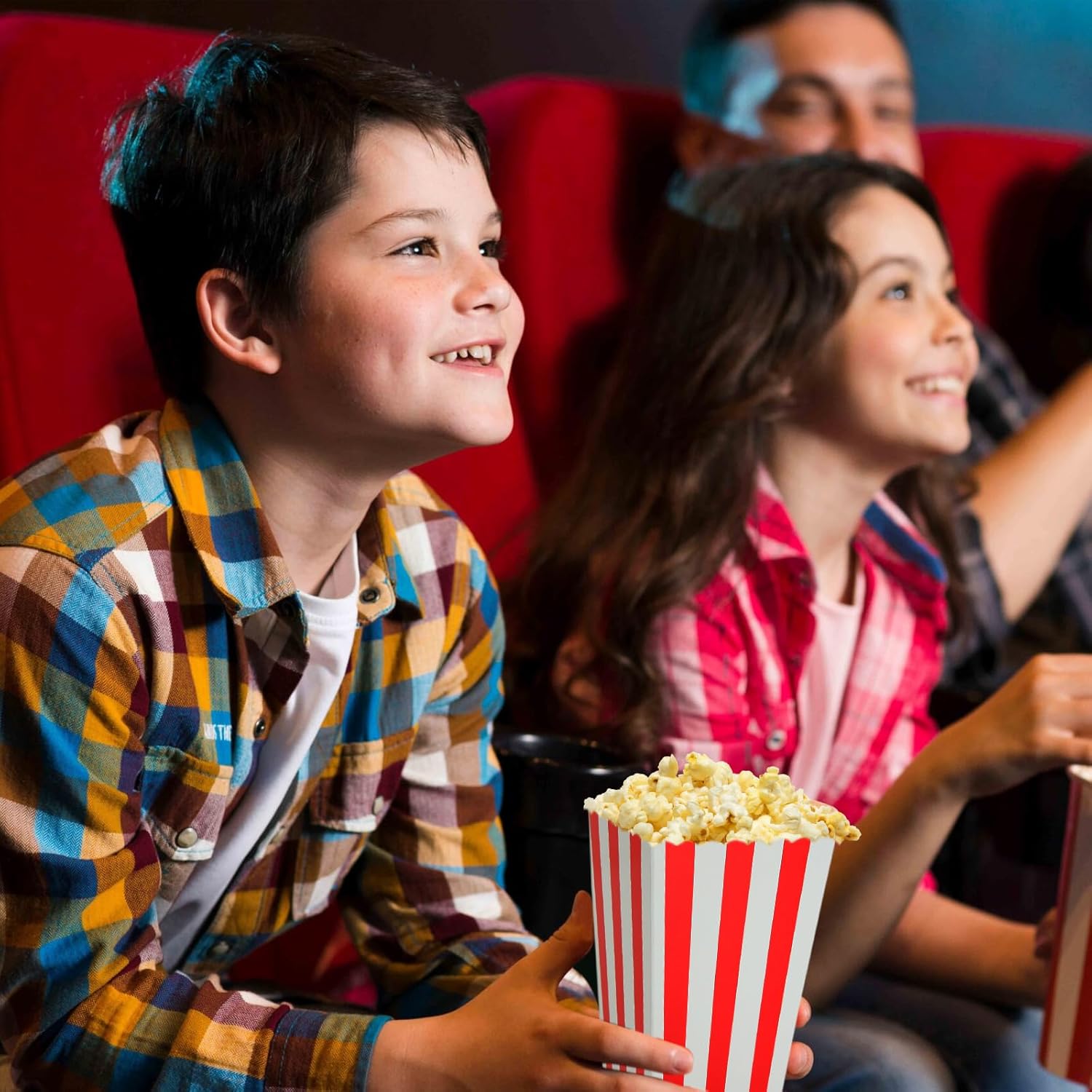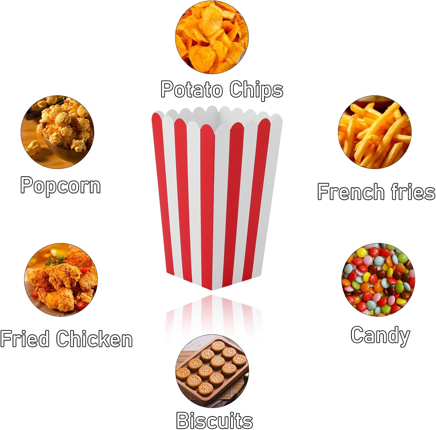 Il pacchetto include: sacchetti di popcorn da 80 pezzi; Dimensioni ridotte: 12x7x5 cm Vari colori e design: sono disponibili una varietà di colori diversi, una varietà di design diversi tra cui scegliere; il design quadrato della base rende la disposizione più stabile Materiali di alta qualità: i sacchetti di popcorn sono realizzati in cartone per alimenti, il materiale è spesso, l'olio non può fuoriuscire facilmente Facile da usare: la scatola di popcorn è facile da montare, bastano pochi passaggi per completare l'installazione; design pieghevole che occupa poco spazio Versatile: le scatole di popcorn possono essere utilizzate per popcorn, patatine, pollo fritto, snack, caramelle, biscotti, noccioline, ecc.