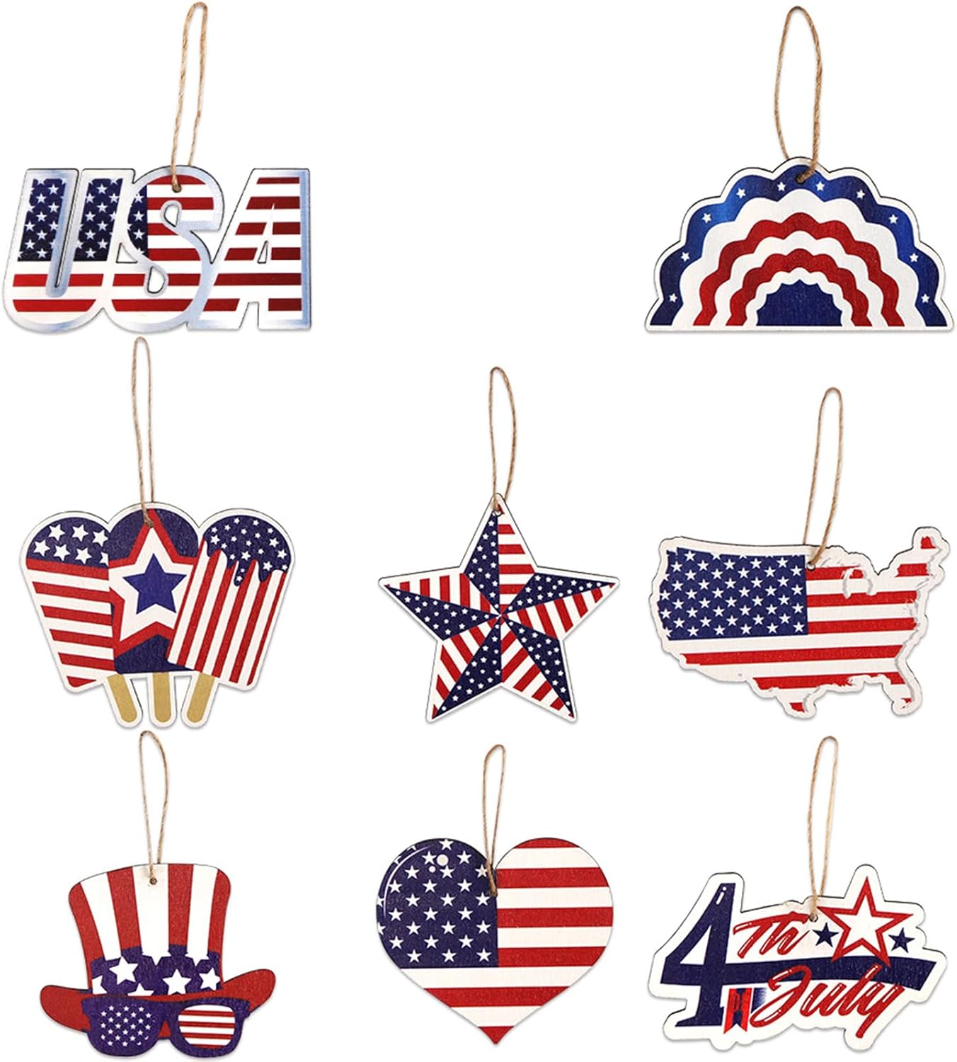 Realizzate con materiali, queste decorazioni sono facili da appendere e per un uso prolungato Queste decorazioni da appendere sono per creare esperienze di vacanza, rendendole un'aggiunta essenziale alla tua collezione di forniture per feste per decorazioni domestiche, allestimenti per feste, vetrine di negozi e feste all'aperto, aggiungendo un tocco di patriottismo a ogni occasione Festeggia il Giorno dell'Indipendenza con il nostro delicato ornamento a stella, per migliorare le atmosfere del festival e mostrare lo spirito patriottico Ideale per chi ama la cultura, in particolare famiglie e organizzazioni che partecipano alla celebrazione del 4 luglio
