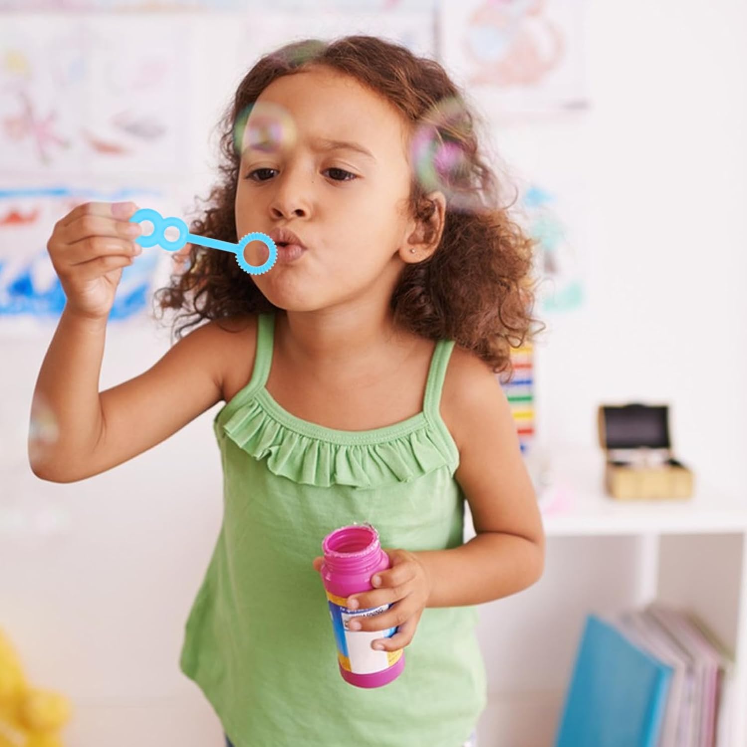 Strumento bacchetta per bolle: assicurati che i tuoi bambini trascorrano un'infanzia felice, divertente Bubble Maker: liscio, senza spine, ergonomico, per una facile presa, strumento bacchetta per bolle, giocattoli per bambini: un ottimo modo per farli alzare dal divano e portarli in giardino per un po' di sano divertimento, strumento bacchetta per bolle, design ergonomico: con un design liscio e privo di spine, queste bacchette per bolle sono facili da afferrare per le mani dei più piccoli e incoraggiano l'indipendenza e la creatività dei bambini. Divertente strumento bacchetta per bolle Emozionante ed educativo: quando soffi bolle, imparerai la tua coordinazione e svilupperai le tue capacità motorie mentre avrai il semplice piacere di guardare le bolle galleggiare. Creatore di bolle per, strumento bacchetta per bolle