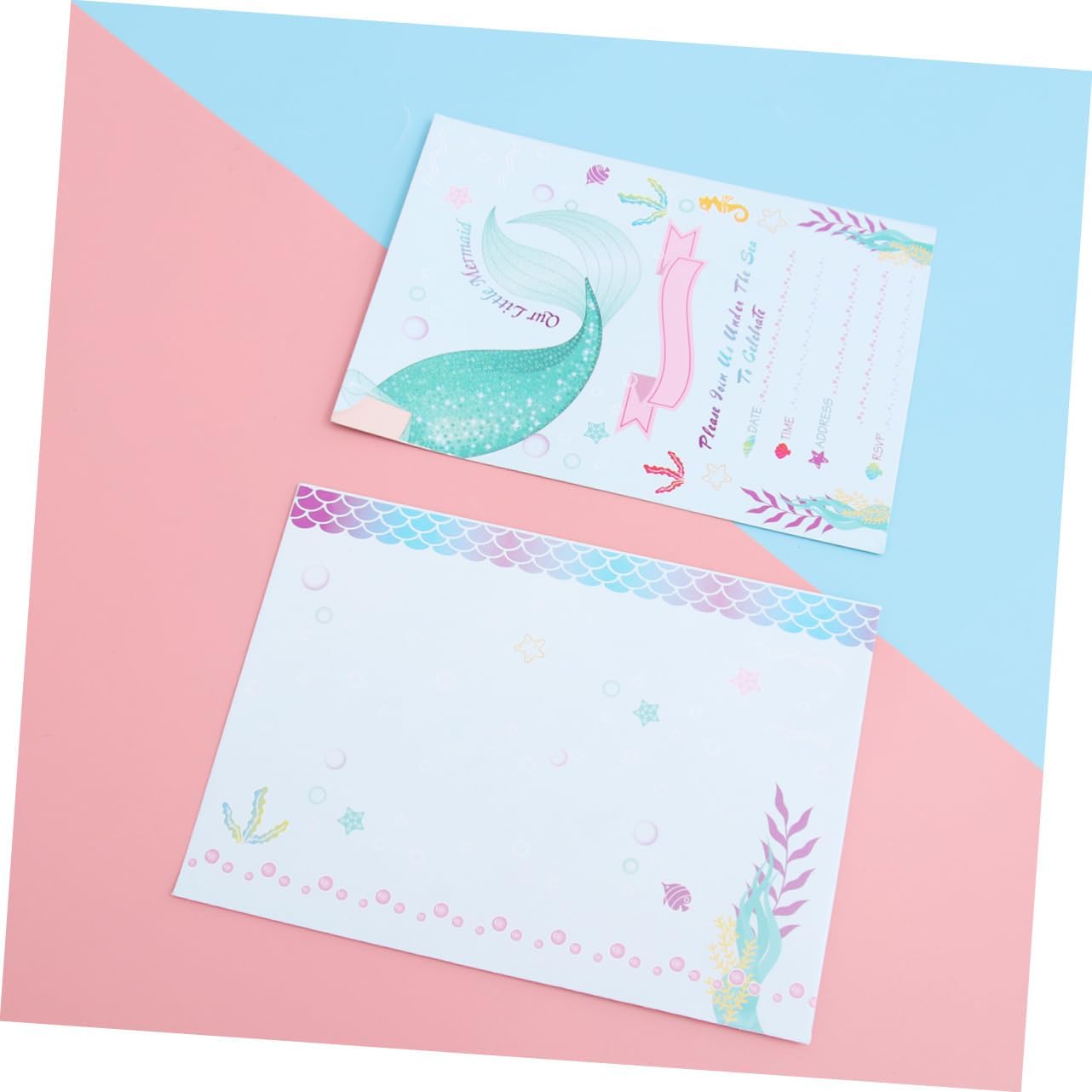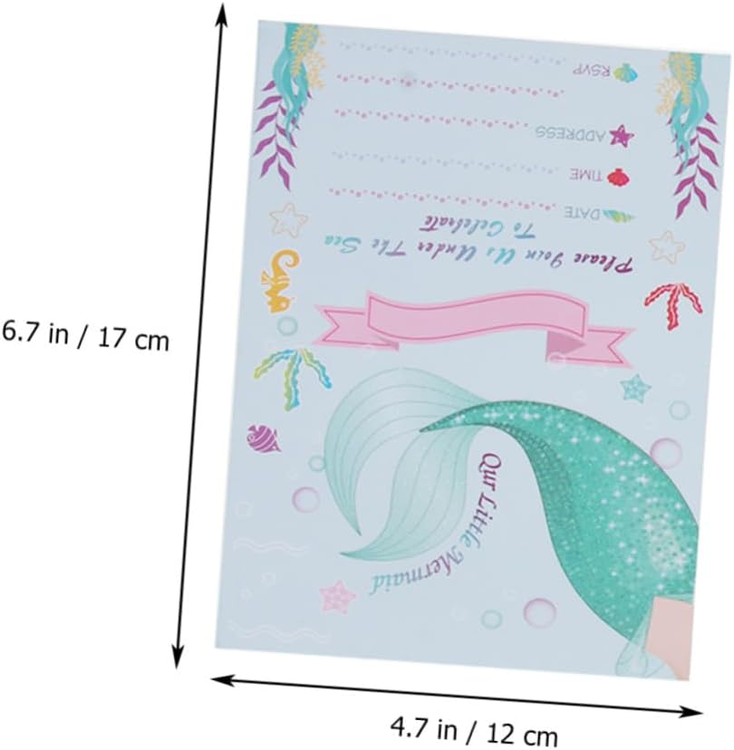 Biglietti d'invito con sirena: realizzati in carta leggera e di alta qualità, la carta è e . Biglietto di carta: stampato con una e attraente forma a sirena, lascerà un'impressione profonda nei tuoi ospiti. Biglietti d'invito per compleanno: ideali per un compleanno a fumetti o per un'altra festa a tema unicorno. Bomboniera: perfetta per feste di compleanno per bambini, baby shower e altro ancora. Decorazione della festa: diversi biglietti d'invito per feste, diverso senso di impressione visiva.
