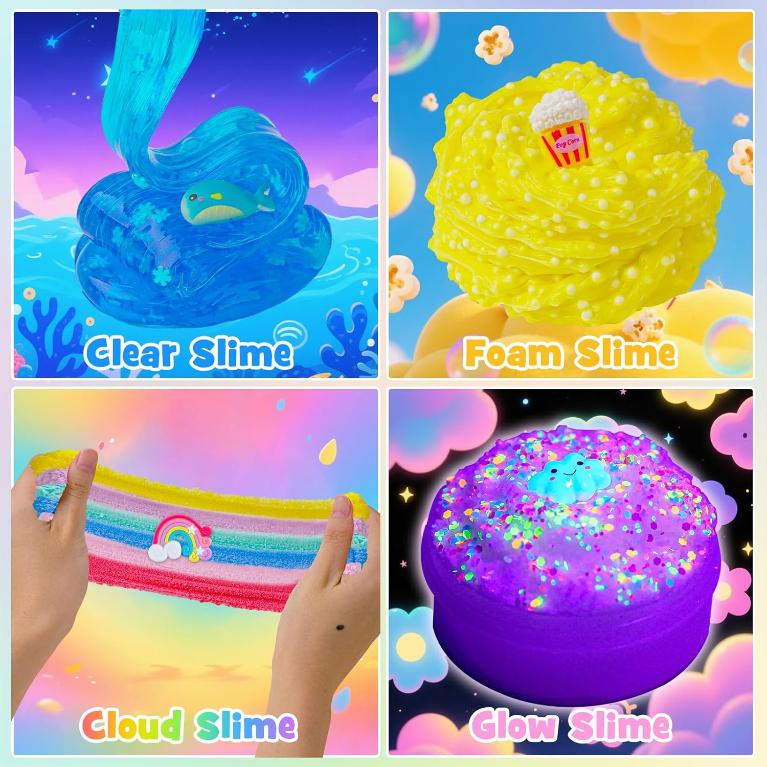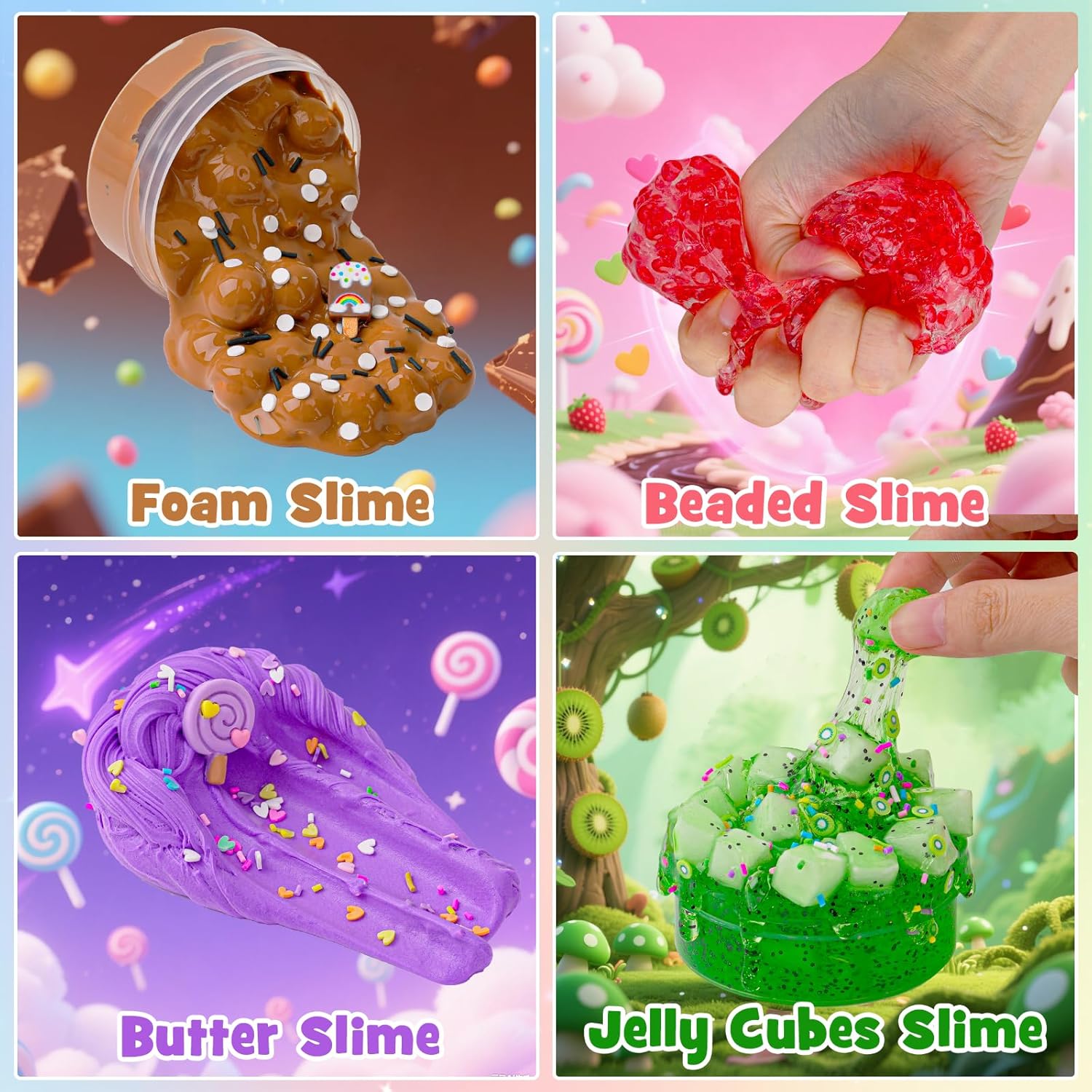 【Kit di melma da 8 diverse consistenze】 Questo kit di melma include 8 diverse consistenze di melma: melma di burro caramellato, melma di nuvola arcobaleno, melma blu trasparente, melma di cubo di gelatina verde, melma fosforescente, melma di schiuma di cioccolato, melma di schiuma di popcorn, acquario rosso slime con perline. Puoi provare lo slime al burro non appiccicoso, lo slime nuvolato super piovigginoso e lo slime chiaro ed elastico allo stesso tempo! 【Colori vivaci e vari componenti aggiuntivi】 Questo pacchetto di slime include 8 colori di slime, ogni barattolo contiene 100 ml di slime, per un totale di 800 ml. Per aumentare il divertimento, abbiamo incluso 9 fantastici componenti aggiuntivi nel nostro kit di slime. Che tu voglia creare slime croccanti, cubetti di gelatina o sperimentare colori diversi, questo kit di slime ha tutto ciò di cui hai bisogno per creare le tue creazioni di slime uniche. 【Non tossico e sicuro al 100%】 Realizzati con ingredienti di alta qualità, questi slime sono atossici e sicuri sia per bambini che per adulti. Nota: per i bambini di età inferiore a 3 anni si consiglia la supervisione di un adulto. Non mangiare! 【Super morbido e molto elastico】 Lo slime di Okaybee offre una consistenza unica che è super morbida al tatto. Grazie alla sua natura facile da usare, puoi tuffarti subito e iniziare a goderti la bontà morbida ed elastica. 【Bomboniere per melma e ottimo regalo】 Data la sua grande capacità e la varietà di componenti aggiuntivi per melma, questo pacchetto di varietà di melma è la bomboniera per melma per bambini. Con 9 tipi di componenti aggiuntivi per slime inclusi, questo kit di slime è un'eccellente scelta regalo per compleanni e Natale.