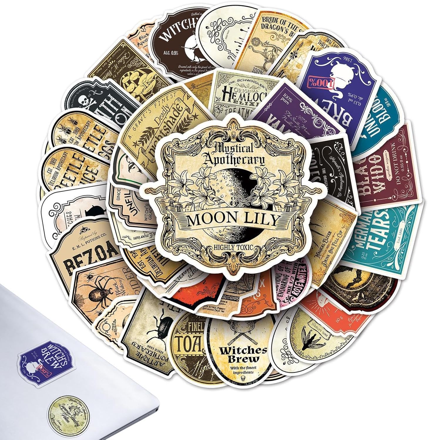 FASCINO DI LUNGA DURATA: goditi la stagione spettrale con gli adesivi per pozioni di Halloween in PVC impermeabili e autoadesivi. Le superfici lisce e piatte assicurano che non rimangano residui dopo la rimozione. Una varietà di adesivi di Halloween: questi 50 adesivi per pozioni di Halloween hanno una vasta gamma di design come illustrazioni spettrali, testi strani e motivi inquietanti che arricchiscono la decorazione del tuo oggetto. Crea bottiglie o barattoli magici con questo set di etichette per pozioni di Halloween. Trasformazione spettrale: trasforma qualsiasi normale bottiglia in una pozione infestata con i nostri adesivi di Halloween. Misurando da circa 5,5 cm a 8,5 cm, queste etichette adesive per pozioni sono adatte per la maggior parte delle forme e dimensioni delle bottiglie. Perfetto per creare l'atmosfera della tua festa di Halloween! Usi multifunzionali: questi adesivi per pozioni di Halloween non sono adatti solo per decorare le tue bottiglie di pozioni, ma aggiungono anche un tocco spettrale alla tua chitarra, skateboard, valigie, bicicletta, laptop e altro ancora. Sono facili da applicare e rimuovere e non lasciano macchie. Piacere magico: questi adesivi per bottiglie di pozioni sono perfetti per ragazze, adolescenti e adolescenti che vogliono godersi un Halloween pieno di sorprese e divertimento. Puoi usarlo per decorare quaderni, laptop, bottiglie d'acqua e altro ancora.