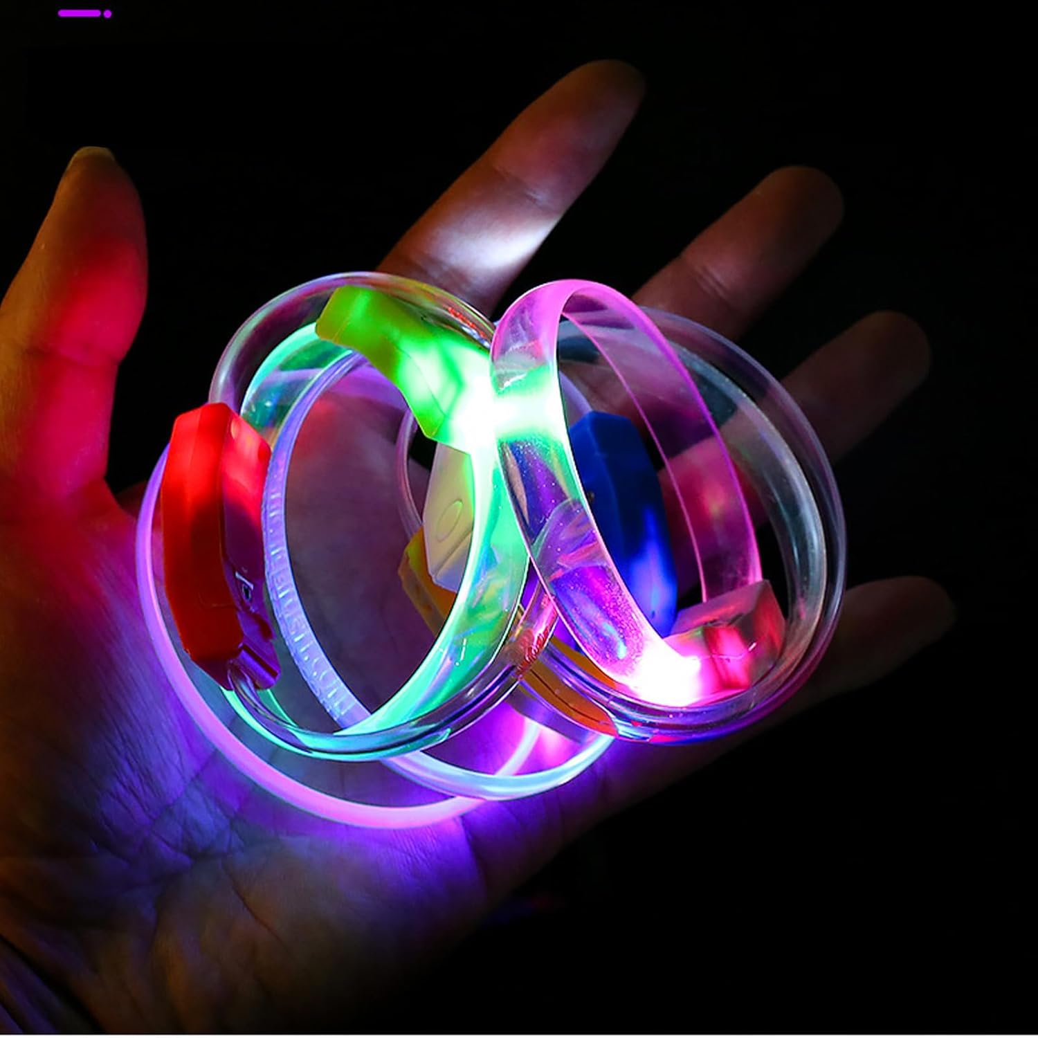 Questi braccialetti LED sono un accessorio essenziale per le feste, entusiasmano qualsiasi riunione garantendoti allo stesso tempo un aspetto visivo ed elegante. Perfetto per corse notturne, festival musicali, feste di compleanno e ogni occasione in cui è essenziale aggiungere atmosfera o sicurezza. Questi braccialetti luminosi realizzati in materiali plastici offrono una vestibilità comoda, rendendoli perfetti per essere indossati a lungo in qualsiasi evento. Vestito per bambini, adolescenti e adulti, in particolare amanti dell'outdoor e frequentatori di feste. Illumina la tua notte con i nostri braccialetti luminosi a LED, dotati di luci LED ad alta luminosità che garantiscono visibilità e migliorano la sicurezza e il divertimento nelle attività notturne.