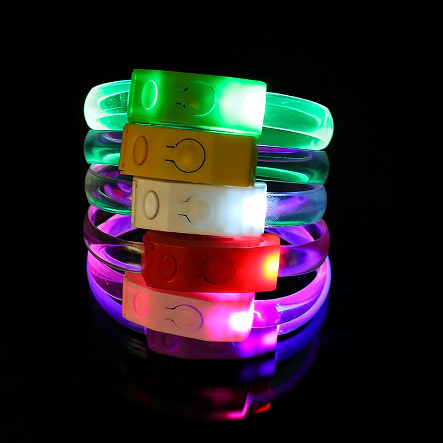 Questi braccialetti LED sono un accessorio essenziale per le feste, entusiasmano qualsiasi riunione garantendoti allo stesso tempo un aspetto visivo ed elegante. Perfetto per corse notturne, festival musicali, feste di compleanno e ogni occasione in cui è essenziale aggiungere atmosfera o sicurezza. Questi braccialetti luminosi realizzati in materiali plastici offrono una vestibilità comoda, rendendoli perfetti per essere indossati a lungo in qualsiasi evento. Vestito per bambini, adolescenti e adulti, in particolare amanti dell'outdoor e frequentatori di feste. Illumina la tua notte con i nostri braccialetti luminosi a LED, dotati di luci LED ad alta luminosità che garantiscono visibilità e migliorano la sicurezza e il divertimento nelle attività notturne.