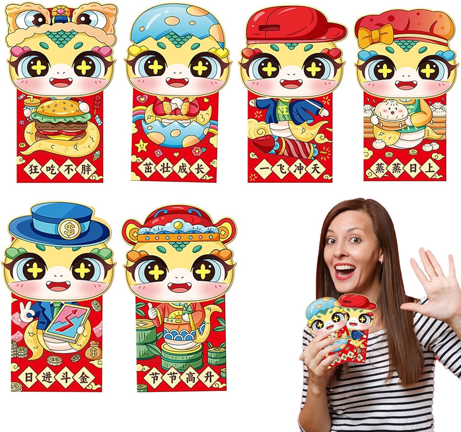 Simbolismo sofisticato: le nostre buste per soldi Hong Baob combinano accuratamente elementi tradizionali e moderni e sono caratterizzati da un aspetto complesso con motivi vivaci e interessanti in colori vivaci. Multiuso: perfetto per feste di famiglia, feste aziendali e qualsiasi occasione in cui si desidera diffondere il buon umore. Con la sua ampia applicabilità a persone di età diverse, è un'opzione versatile che è garantita per rendere speciale ogni celebrazione Trasmetti cura e benedizioni: Pieno di atmosfera festosa e connotazioni culturali tradizionali, questi pacchetti di soldi fortunati trasmettono la tua cura e benedizione in modo significativo Buon regalo: buste di denaro di Hong Bao. Fai un regalo pratico e premuroso che irradia cura e benedizioni e fornirà un sorriso duraturo e sorprese quotidiane. Perfetto per ogni occasione: condividi il tuo amore e invia benedizioni natalizie Porta divertimento festoso: sperimenta il calore della celebrazione e accoglie nuovi inizi simboleggiando allo stesso tempo la speranza. 6 pacchetti di soldi portafortuna per la festa di primavera. Aggiungi divertimento ed eccitazione ad altre feste con il prodotto indispensabile "Cinese Red Envelopes".