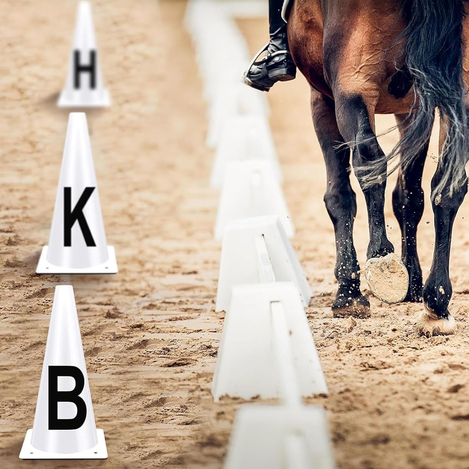 Set completo: perfeziona le tue prestazioni di dressage con i coni da dressage. Il nostro set completo fornisce coni sufficienti per delimitare facilmente i confini della competizione e praticare una varietà di mosse. Struttura robusta: i nostri coni da dressage sono realizzati con materiale PVC di alta qualità che garantisce non solo resistenza alla flessione e alla rottura, ma resiste anche all'usura. Inoltre, grazie al design robusto, questi coni rimangono leggeri, sicuri e innocui in qualsiasi condizione atmosferica. Design semplice: massimizza il tuo allenamento con il nostro set di coni da dressage, progettato all'altezza perfetta per una facile lettura e progettato per non occupare troppo spazio. Goditi una concentrazione ininterrotta con un'etichetta chiara per una facile visualizzazione, che lo rende il set ideale per un allenamento facile. Facile da usare: con questi coni da dressage, porta il tuo allenamento equestre a un livello superiore. Semplici da configurare e ideali per la maggior parte degli ambienti di guida, rappresentano strumento di allenamento versatile sia per principianti che per professionisti. Migliora il tuo gioco di dressage con questi coni indispensabili. Offri molteplici vantaggi: migliora l'addestramento del tuo cavallo con i coni da dressage. Questi coni con lettere svolgono un ruolo chiave nel coordinare i movimenti del cavallo e guidare i cavalieri per coerenza e precisione durante l'allenamento o le competizioni basati sulle prestazioni.