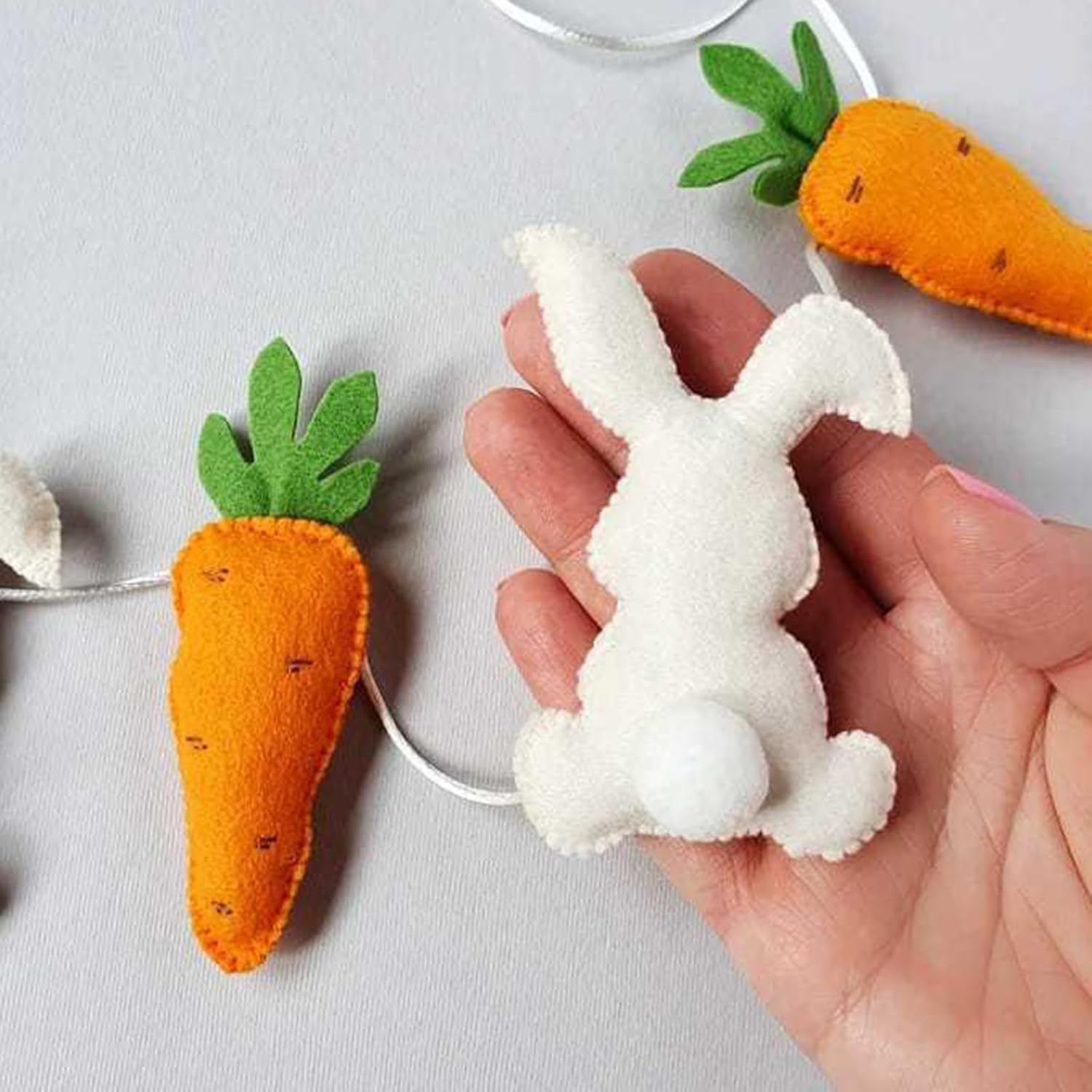 Trasforma qualsiasi soggiorno, aula, ufficio o feste con questo accattivante accessorio decorativo salvaspazio Adatto per proprietari di case, educatori e organizzatori di eventi che cercano forniture per feste giocose ma eleganti per feste stagionali I graziosi coniglietti e carote fatti a mano aggiungono fascino stravagante a qualsiasi spazio, ideali come decorazione per la casa o decorazione per le vacanze di festival Realizzata in morbido tessuto con cuciture intricate e cordoncino per appenderla, questa decorazione da appendere a forma di carota di coniglio migliora l'ambiente interno Ogni ornamento unico a forma di carota di coniglio porta divertimento nello spazio creativo dei bambini e fa un regalo premuroso per gli appassionati di artigianato