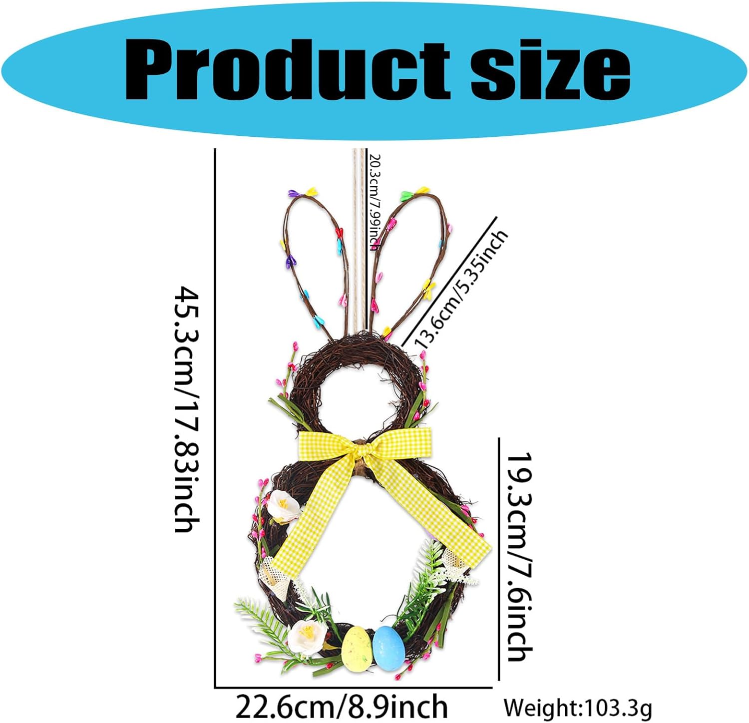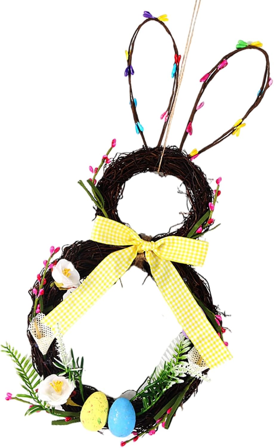 Meraviglioso dolce caldo amico famiglia o te stesso Design accattivante, il cartello da appendere alla porta di Pasqua ti porta un buon augurio di felicità Disegni a tema pasquale, la combinazione di coniglietti, mostra le atmosfere pasquali Ampiamente applicabile può essere appeso alla porta d'ingresso, sul cortile, alla finestra o alla recinzione artistica da giardino, adatto anche per casa, sala da pranzo, soggiorno, vacanze e feste, aggiungendo bella e calore in casa Materiali, materiali simulati, realistici e durevoli e non sbiadiscono facilmente, facili da appendere, facili da trasportare e riporre