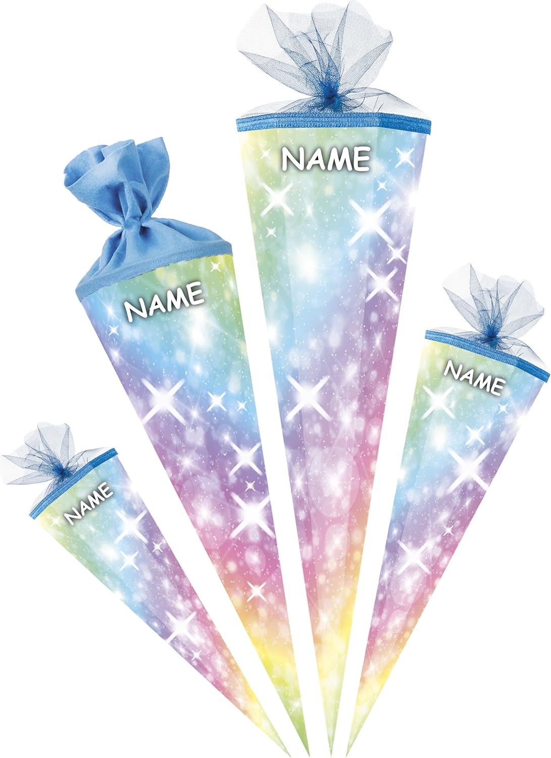 cono scolastico stabile e di alta qualità _____ Dimensioni: 100 cm di lunghezza (misurato solo il cartone) ___ Forma: 12 - QUADRATO ____ Motivo: "colori dell'arcobaleno e stelle colorate" autentico FATTO A MANO e prodotto in Germania! _______ Materiale: cartone rivestito e di alta qualità - idrorepellente! _____ SUPER stabile e tanto spazio per fantastici regali! ____ ottimi colori di stampa! il bordo superiore del sacchetto regalo ha un elegante bordo intrecciato e un'elegante finitura in tulle scintillante SPECIALE E INDIVIDUALE: _____ a seconda della selezione -> personalizzato con il NOME desiderato e il TESTO desiderato ___ / ____ la richiesta del nome viene effettuata - AUTOMATICAMENTE - per favore NON inviare un messaggio in anticipo Fiocchi come elementi di fissaggio, piccole cartelle decorative da appendere, candele, varie decorazioni per la stanza e la tavola, salvadanai ___ e persino imbottiture complete! ____ I coni scolastici sono ottime idee regalo... per l'inizio della scuola, dell'asilo e dell'asilo, per l'inizio della formazione o degli studi, per un nuovo lavoro! …. o un inizio diverso per una nuova fase della vita
