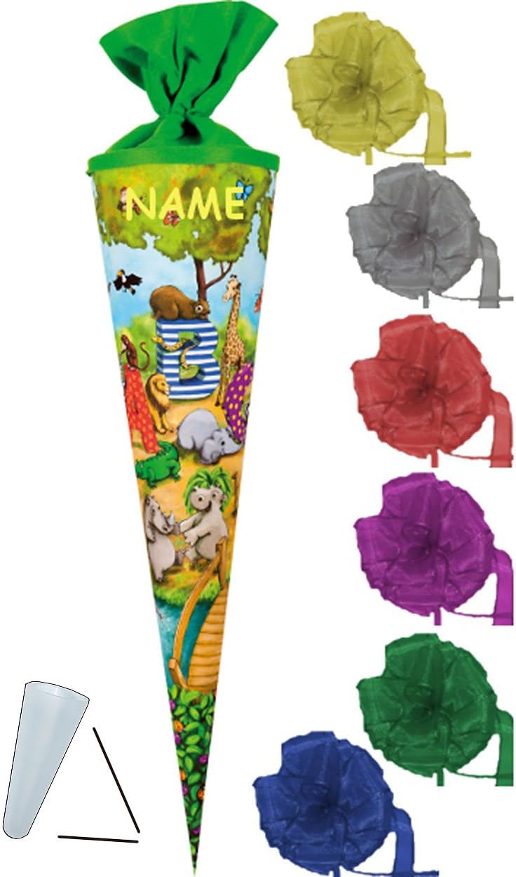 con bellissimo effetto 3D - stampa GLITTER e mica!! ____ robusto cono scolastico lungo 35 cm (misurato solo il cartone) __ con estremità in tulle ___ forma rotonda - motivo: animale ABC IL cono scolastico individuale: incl. fiocco in tulle e NOME DESIDERATO: ___ il nome è richiesto - AUTOMATICAMENTE entro 4 ore - NON inviare un messaggio in anticipo ___ Scelta della taglia: 22 / 35 / 50 / 70 / 85 cm - OPZIONALE è disponibile una punta in plastica abbinata, trasparente e solida che può essere agganciata (questo rende la punta del cono della scuola molto stabile e ferma) ---- (questo articolo deve essere ordinato EXTRA al cono della scuola) e come extra: IL LOOP individuale con il nome DESIDERATO - aggiungi semplicemente l'articolo "nome desiderato" come extra nel carrello, il nome viene poi applicato sul fiocco per abbinarlo ai coni scolastici/sacchetti regalo ___ ci sono anche piccoli sacchetti da 10 cm come decorazione da appendere, targhette con il nome, decorazioni per la tavola, coni scolastici con steli per composizioni floreali, motivi sparsi, ghirlande e articoli per feste