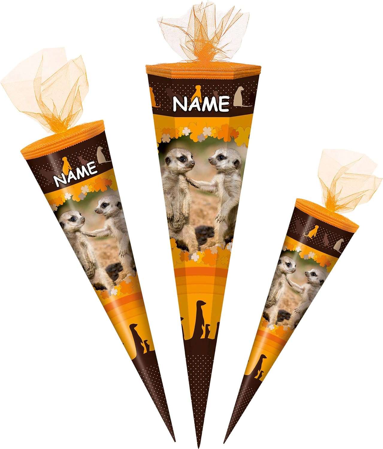 con bellissimo effetto 3D - stampa GLITTER e mica!! ____ stabile e di alta qualità - cono scolastico ___ 70 cm di lunghezza (misurato solo il cartone) ___ forma: ROTONDO ____ il bordo superiore ha un elegante bordo intrecciato e una finitura in tulle ____ motivo: "animali divertenti / suricati" l'OCCHIO: ______ il tuo cono scolastico personalizzato ___ incl. grande effetto 3D _ fiocco in colore coordinato - con il tuo NOME DESIDERATO + nome extra sul cono della scuola! Il nome è attaccato all'arco E al cono della scuola! ___ viene richiesto il nome - AUTOMATICAMENTE entro 4 ore - NON inviare un messaggio in anticipo ___ i modelli di fiocco vengono consegnati misti / cercheremo un bellissimo fiocco effetto 3D abbinato per il tuo cono scolastico (puoi vedere esempi nelle foto) prodotto in Germania! __ Materiale: cartone rivestito e di alta qualità - SUPER stabile! - idrorepellente! __ fantastici colori di stampa!_____ OPZIONALE è disponibile una punta in plastica abbinata, trasparente e solida da applicare (questo rende la punta del cono scolastico molto stabile e salda) ---- (questo articolo deve essere ordinato EXTRA al cono scolastico) da abbinare ai coni scolastici/sacchetti regalo ___ ci sono anche piccoli sacchetti da 10 cm come decorazione da appendere, targhette con il nome, decorazioni da tavola, coni scolastici con steli per composizioni floreali, motivi sparsi, ghirlande ecc. Articoli per feste