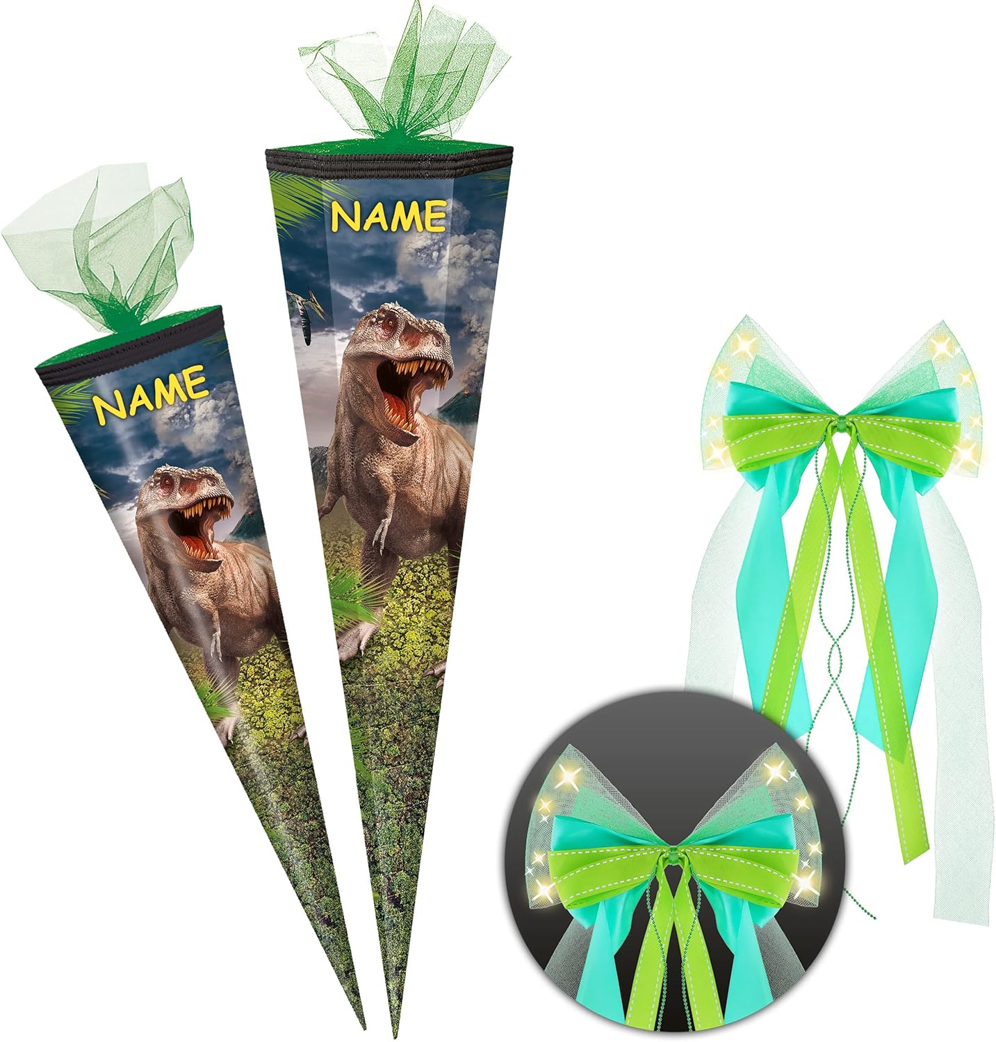 con bellissimo effetto 3D - stampa GLITTER e mica!! ____ stabile e di alta qualità - zaino per la scuola _____ Dimensioni: 70 cm di lunghezza (misurato solo il cartone) ___ Forma: ROTONDO ____ Motivo: "Dinosauro - Tyrannosaurus Rex" SPECIALE E INDIVIDUALE: _____ il fiocco è personalizzato con il NOME desiderato e il TESTO desiderato ___ / ____ il nome è richiesto - AUTOMATICAMENTE - per favore NON inviare un messaggio in anticipo LAVORO ARTIGIANALE genuino e made in Germany! _______ Materiale: cartone rivestito e di alta qualità - idrorepellente! _____ SUPER stabile e tanto spazio per fantastici regali! ____ ottimi colori di stampa! _______ / ___ il bordo superiore del sacchetto regalo ha un elegante bordo intrecciato e un'estremità in tulle dell'OCCHIO: ______ incluso un grande fiocco colorato coordinato - LED LIGHT & LIGHT - (nobile e fatto a mano) ______ la consegna dei bellissimi modelli di fiocchi è mista (puoi vedere esempi nelle immagini) per abbinarli, la marca _ alles-meine Gmbh __ offre oltre 1000 articoli relativi all'inizio della scuola ____ ad es. vari fiocchi come chiusure, piccoli zaini decorativi da appendere, candele, varie decorazioni per la stanza e la tavola, salvadanai ___ e persino imbottiture complete! ____ I coni scolastici sono ottime idee regalo... per l'inizio della scuola, dell'asilo e dell'asilo, per l'inizio della formazione o degli studi, per un nuovo lavoro! …. o un inizio diverso per una nuova fase della vita
