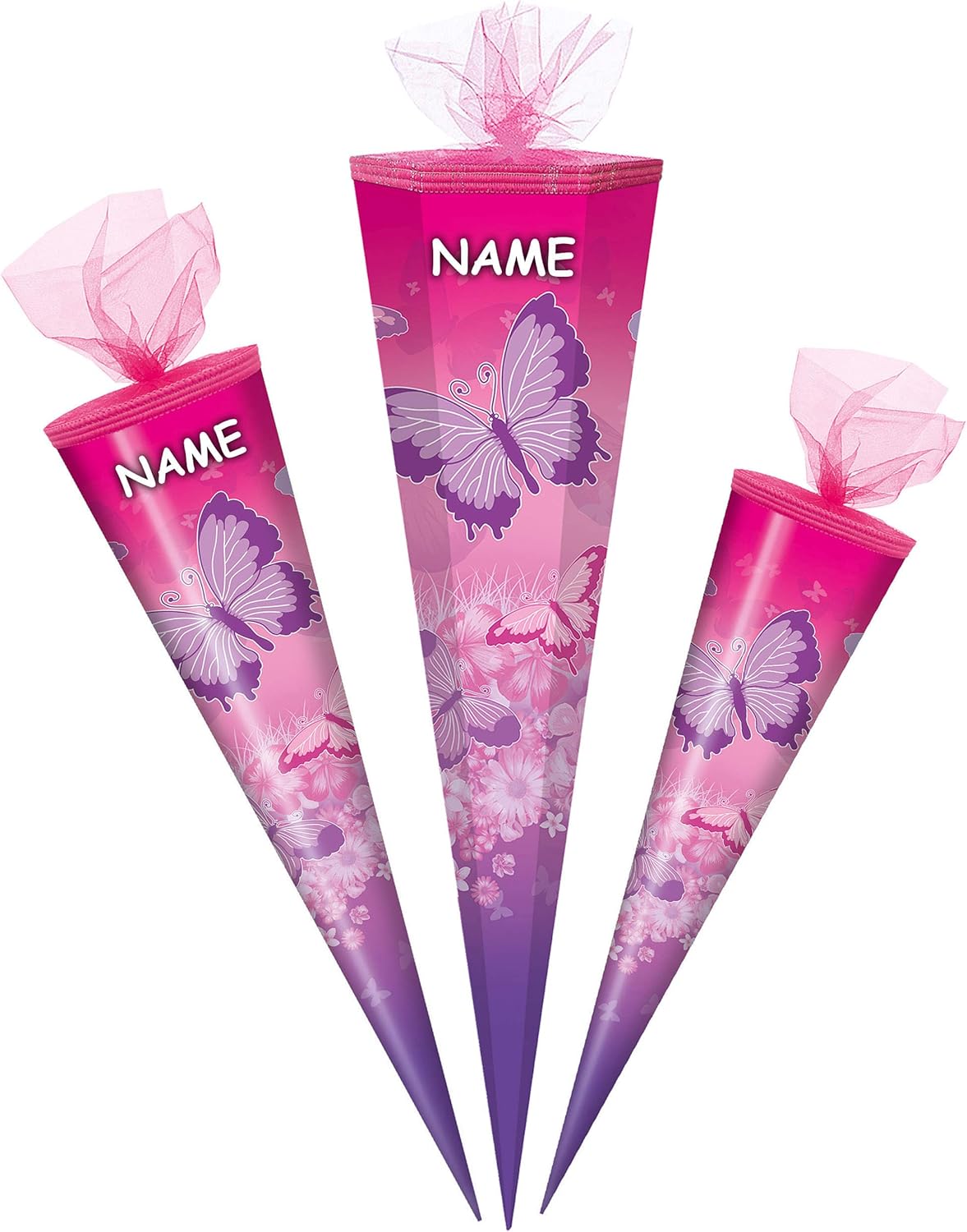 con bellissimo effetto 3D - stampa GLITTER e mica!! ____ stabile e di alta qualità - cono scolastico - lungo 50 cm (misurato solo il cartone) ____ il bordo superiore ha una finitura in tulle - forma: ROTONDO ___ motivo: "Farfalle e fiori" l'OCCHIO: ______ il tuo cono scolastico personalizzato ___ compreso: individualmente con il tuo NOME DESIDERATO - il nome verrà fatto corrispondere ___ la richiesta del nome viene effettuata - AUTOMATICAMENTE entro 4 ore - NON inviare un messaggio in anticipo ___ compreso grande effetto 3D in un colore coordinato _ LUCE LED E fiocco LUMINOSO - questo renderà il tuo cono scolastico un'attrazione ancora più bella ______ i bellissimi modelli di fiocchi vengono consegnati misti (puoi vedere esempi nelle immagini) made in Germany! __ Materiale: cartone rivestito e di alta qualità - SUPER stabile! - idrorepellente! __ fantastici colori di stampa!_____ OPZIONALE è disponibile una punta in plastica abbinata, trasparente e solida da attaccare (questo rende la punta del cono scolastico molto stabile e stabile) ---- (questo articolo deve essere ordinato EXTRA al cono scolastico) e come extra: IL LOOP individuale con il nome DESIDERATO - aggiungi semplicemente l'articolo "nome desiderato" come extra nel carrello, il nome verrà poi applicato al fiocco