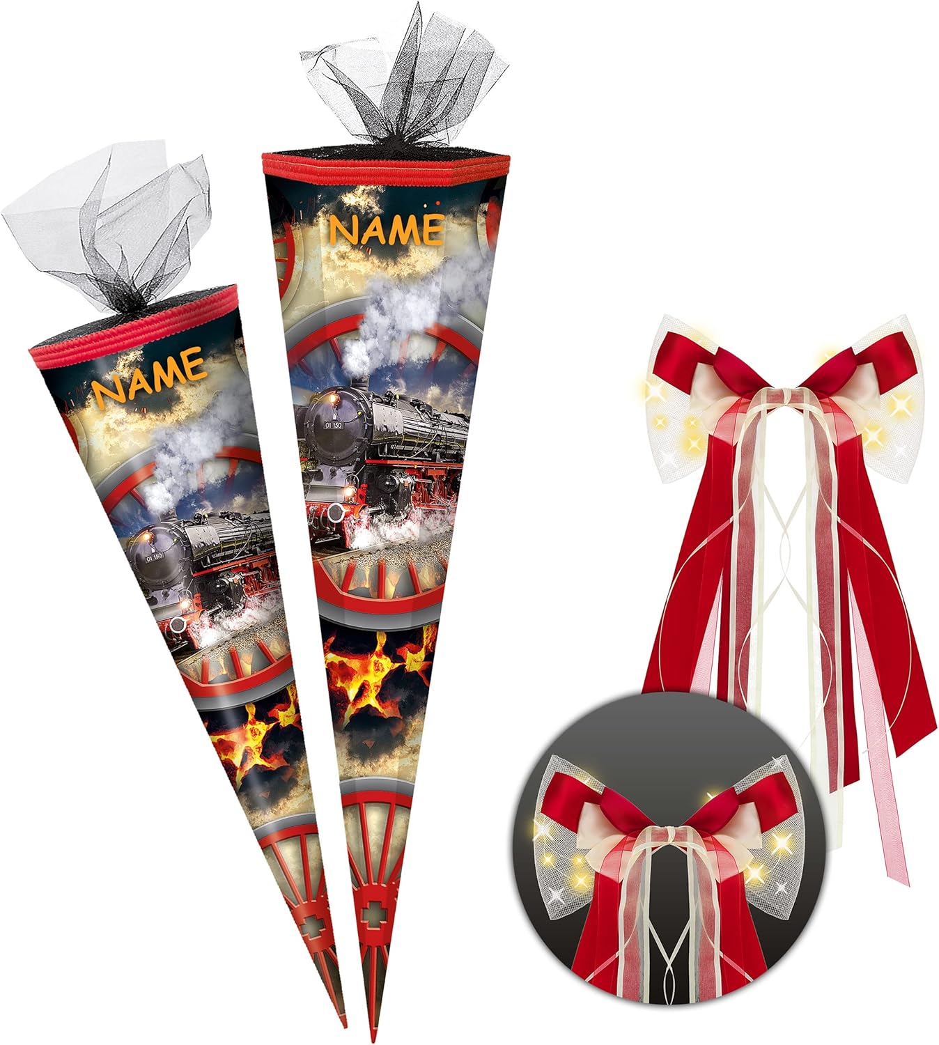 con bellissimo effetto 3D - stampa GLITTER e mica!! ____ cono scolastico stabile e di alta qualità _____ Dimensioni: 50 cm di lunghezza (misurato solo il cartone) ___ Forma: ROTONDO ____ Motivo: "Ferrovia / Locomotiva - Locomotiva a vapore" autentico FATTO A MANO e prodotto in Germania! _______ Materiale: locomotiva di alta qualità e cartone rivestito - idrorepellente! _____ SUPER stabile e tanto spazio per fantastici regali! ____ ottimi colori di stampa! _______ / ___ il bordo superiore del sacchetto regalo ha un elegante bordo intrecciato e una finitura in tulle l'OCCHIO: ______ incluso un grande fiocco colorato coordinato - LUCE LED E LUCE - fiocco (nobile e fatto a mano) ______ la consegna dei bellissimi modelli di fiocco è mista (puoi vedere esempi nelle immagini) SPECIALE E INDIVIDUALE: _____ a seconda della selezione -> personalizzato con il NOME desiderato e il TESTO desiderato ___ / ____ viene effettuata la richiesta del nome - AUTOMATICAMENTE: NON inviare un messaggio in anticipo. La marca _ alles-meine Gmbh __ offre oltre 1000 articoli relativi all'inizio della scuola ____ ad es. vari fiocchi come chiusure, piccoli zaini decorativi da appendere, candele, varie decorazioni per la stanza e la tavola, salvadanai ___ e persino imbottiture complete! ____ I coni scolastici sono ottime idee regalo... per l'inizio della scuola, dell'asilo e dell'asilo, per l'inizio della formazione o degli studi, per un nuovo lavoro! …. o un inizio diverso per una nuova fase della vita
