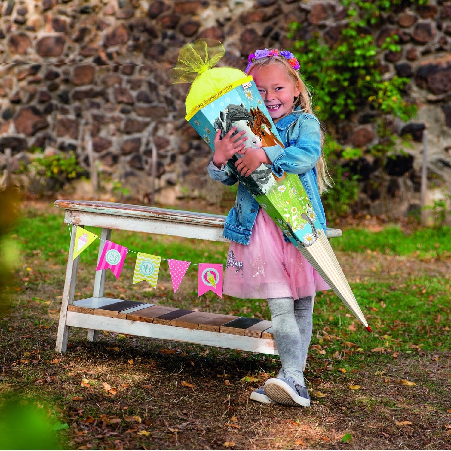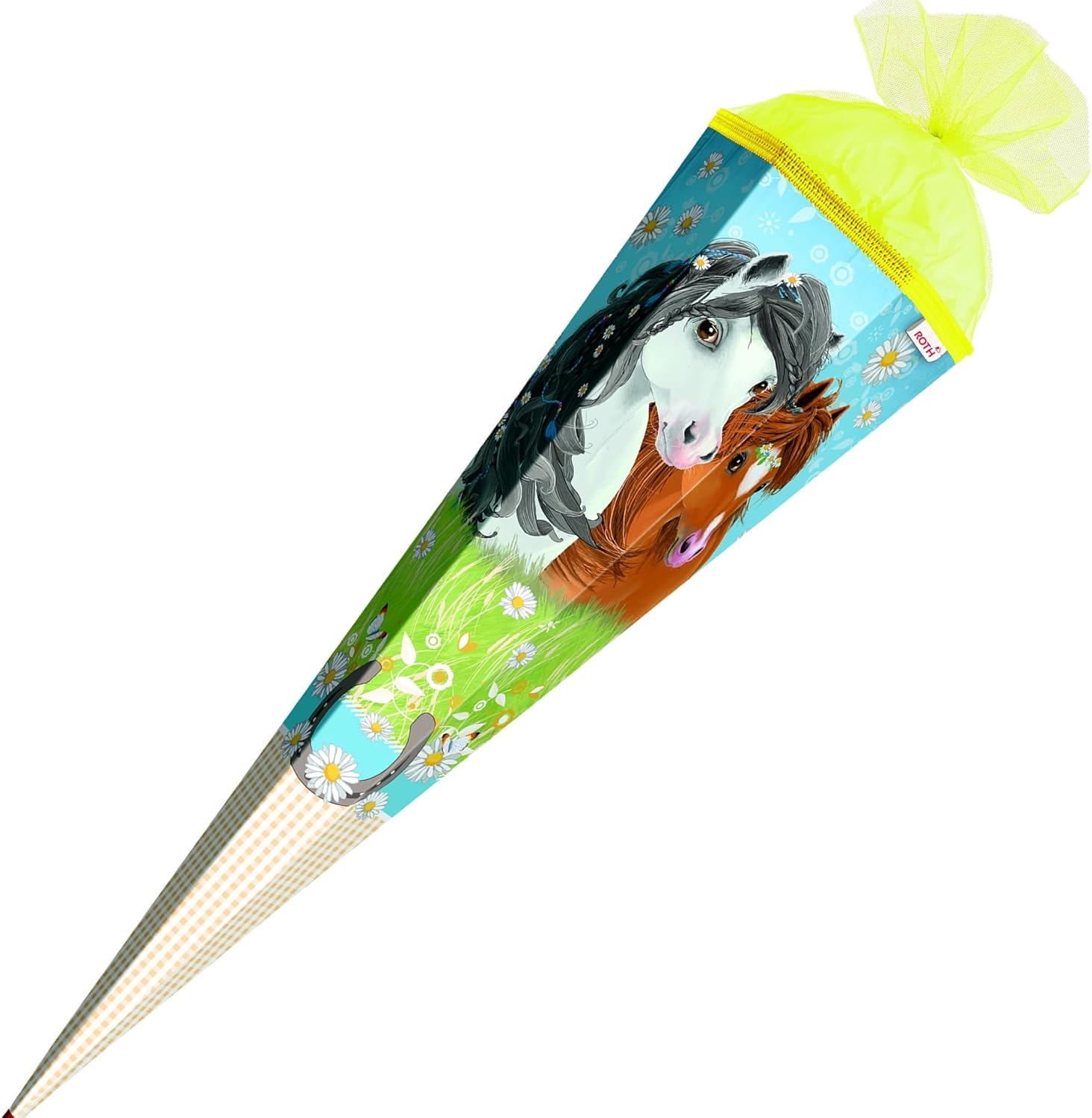 Cono scolastico con incisione / cono di zucchero / 85 cm / quadrato / "cavalli fioriti"