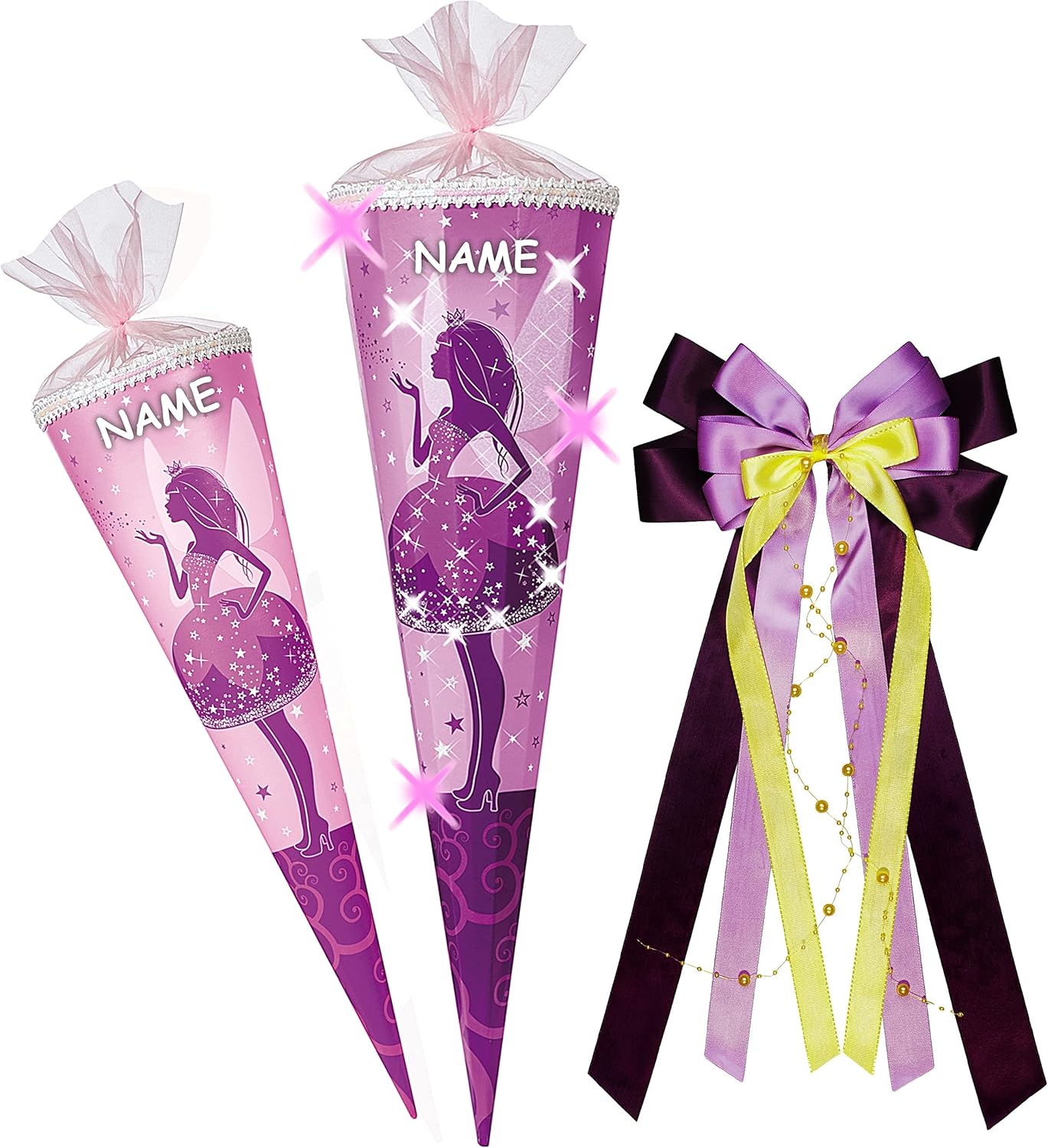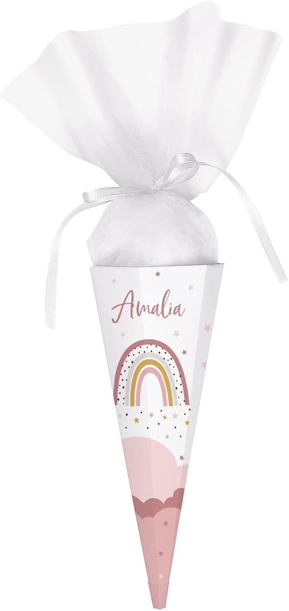 Cono scuola con incisione Lunghezza: quadrato 85 cm con chiusura in tulle e bordo in passamaneria con incisione laser. Dopo l'acquisto comunicateci il nome desiderato e, se lo desiderate, la data desiderata (ad esempio la data di iscrizione alla scuola). Mettiamo la data al centro in un carattere più piccolo sotto il nome. Questo ti darà un ricordo per tutta la vita poiché un'incisione è permanente!