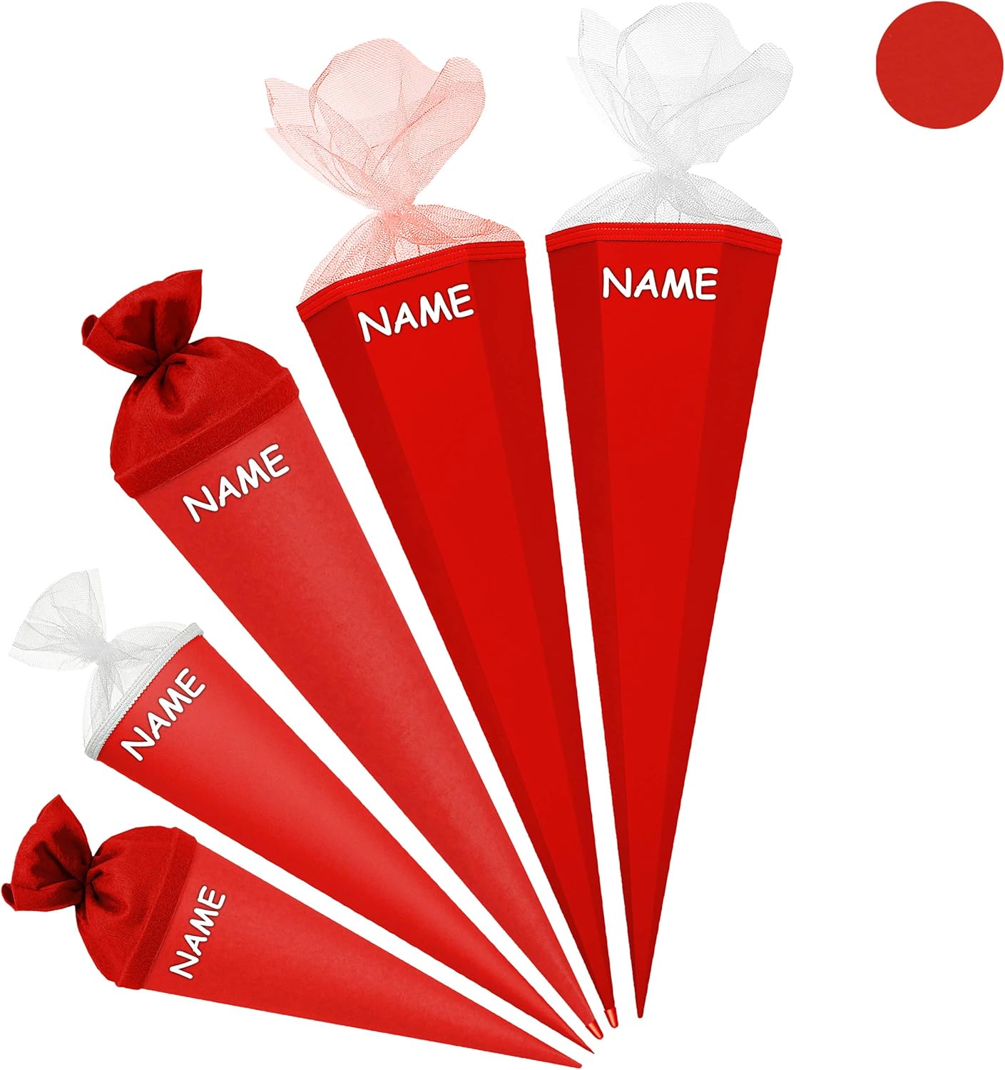 Stabile e di alta qualità - cono scolastico ___ 85 cm di lunghezza ___ Forma: 6 - QUADRATO ____ Colore di base: "ROSSO forte" (colore opaco) _____ il bordo superiore ha un elegante bordo intrecciato rosso o bianco e una finitura in tulle BIANCO l'OCCHIO: ______ il tuo cono scolastico individuale ___ incl. grande effetto 3D in colore coordinato _ fiocco - con il tuo primo NOME desiderato - il nome verrà personalizzato! ___ viene richiesto il nome - AUTOMATICAMENTE entro 4 ore - NON inviare un messaggio in anticipo ___ i modelli di fiocco vengono consegnati misti / cercheremo un bellissimo fiocco effetto 3D abbinato per il tuo cono scolastico (puoi vedere esempi nelle foto) prodotto in Germania! __ Materiale: cartone rivestito e di alta qualità - SUPER stabile! - idrorepellente! __ colori di stampa fantastici! ____ OPZIONALE è disponibile una punta in plastica abbinata, trasparente e solida da attaccare (questo rende la punta del cono scolastico molto stabile e stabile) ---- (questo articolo deve essere ordinato EXTRA al cono scolastico) questo cono di zucchero è ideale ____ per fai da te, dipingere, etichettare e incollare... e ovviamente anche per cucire e può essere rivestito con TESSUTO ________ ma può anche essere usato in un colore ___ e come extra: IL CONO scolastico individuale con il tuo DESIDERATO PER PRIMO NOME - è sufficiente aggiungere extra al carrello la voce "Nome desiderato", il nome verrà poi applicato al cono scuola