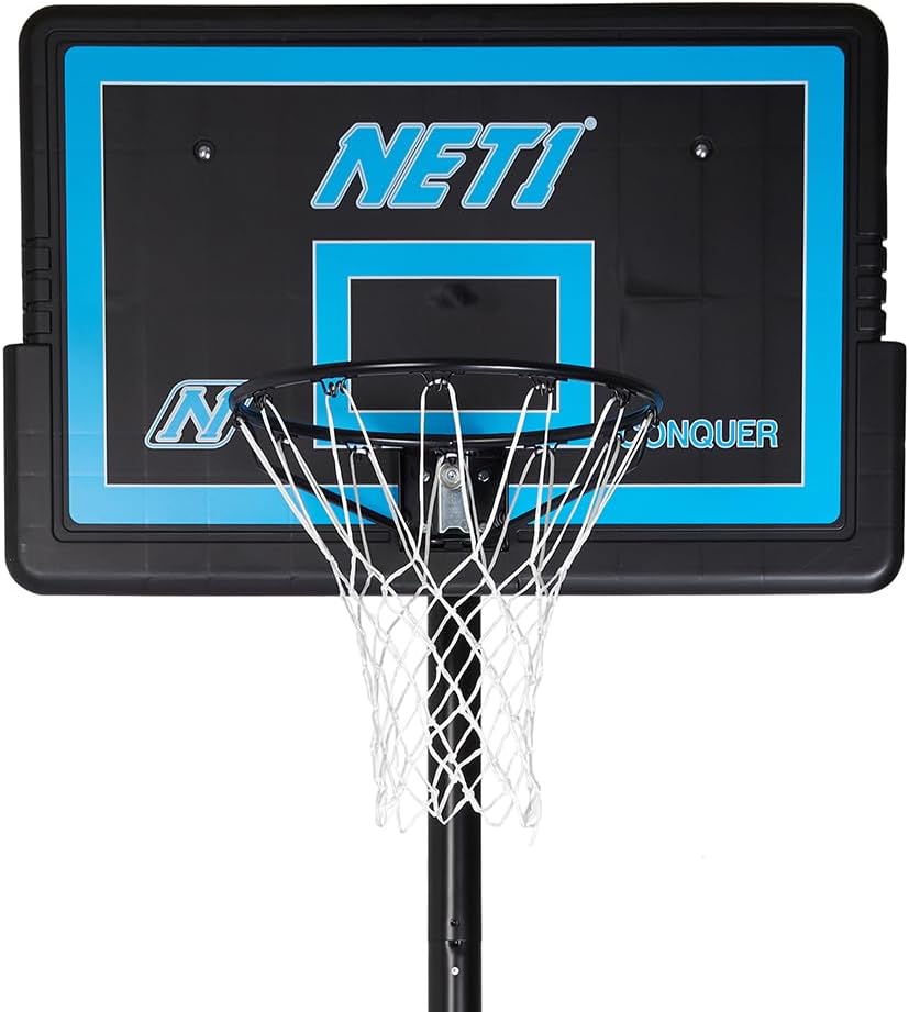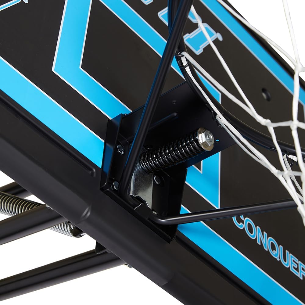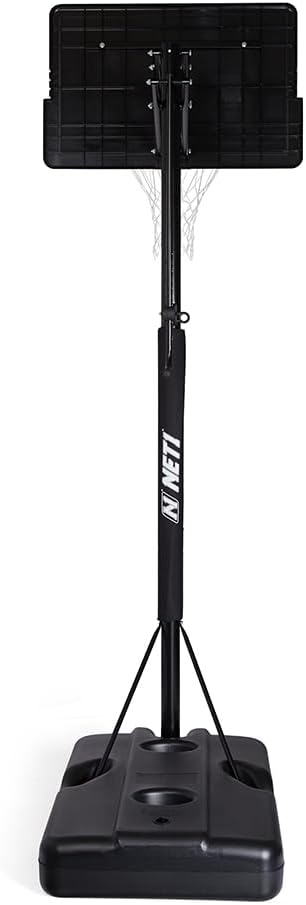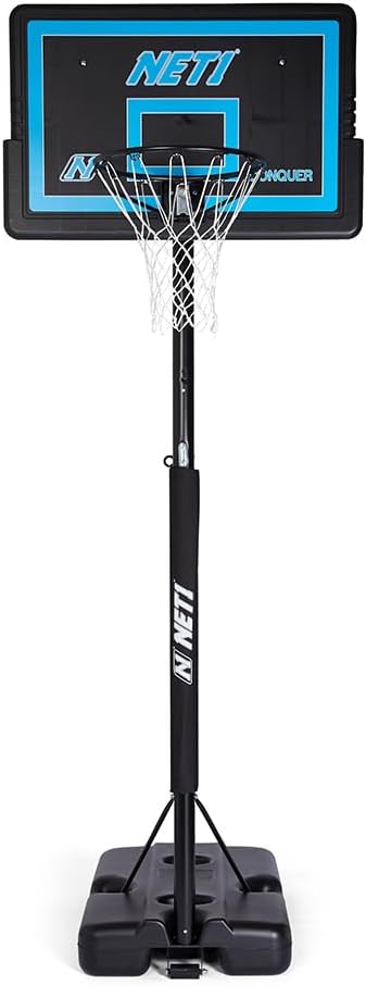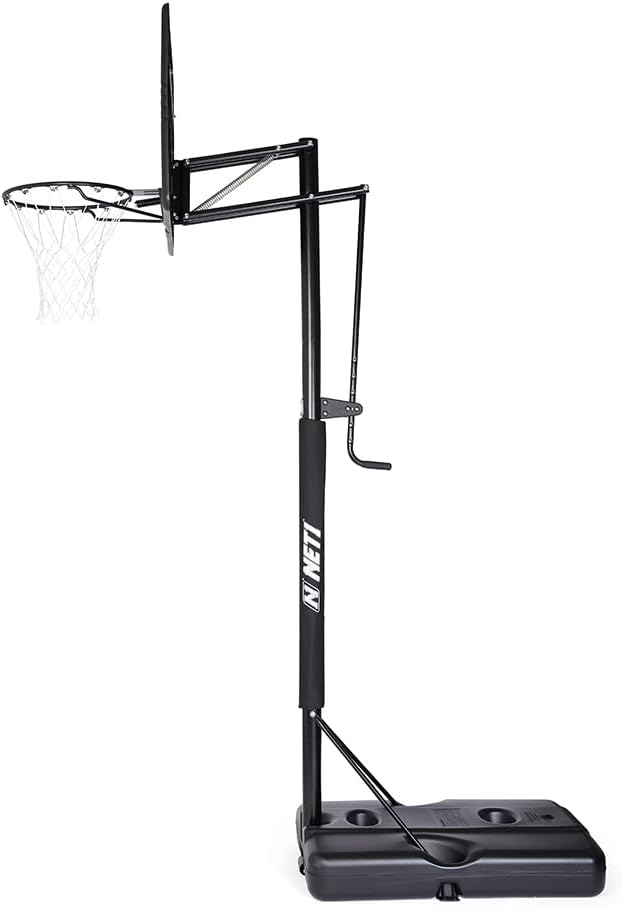 111 x 71 cm rettangolo contatto iniezione PP tabellone con supporto 'T' Bar. Protezione dai raggi UV. Solido acciaio 16 mm obiettivo con molla a compressione. Diametro del cerchio 45.72 con 2.5 mm piastra posteriore. Adatto a tutte le condizioni atmosferiche 12 loop Net.Asta, diametro 7.62 cm, 3 pezzo verniciato a polvere, 1.2 mm Spessore della parete.Pole Pad protettivo incluso. nautici regolazione in altezza da 2.28 a 3.05 m (7 '15,2 cm – 10') si regola in altezza desiderata in pochi secondi senza l' uso di attrezzi. Colpo da 145 litri – Base in plastica stampata, da riempire con acqua o sabbia.Picchetti per fissaggio adatto per ogni lato della base.Portable base si muove da sola, alla ruota frontale.