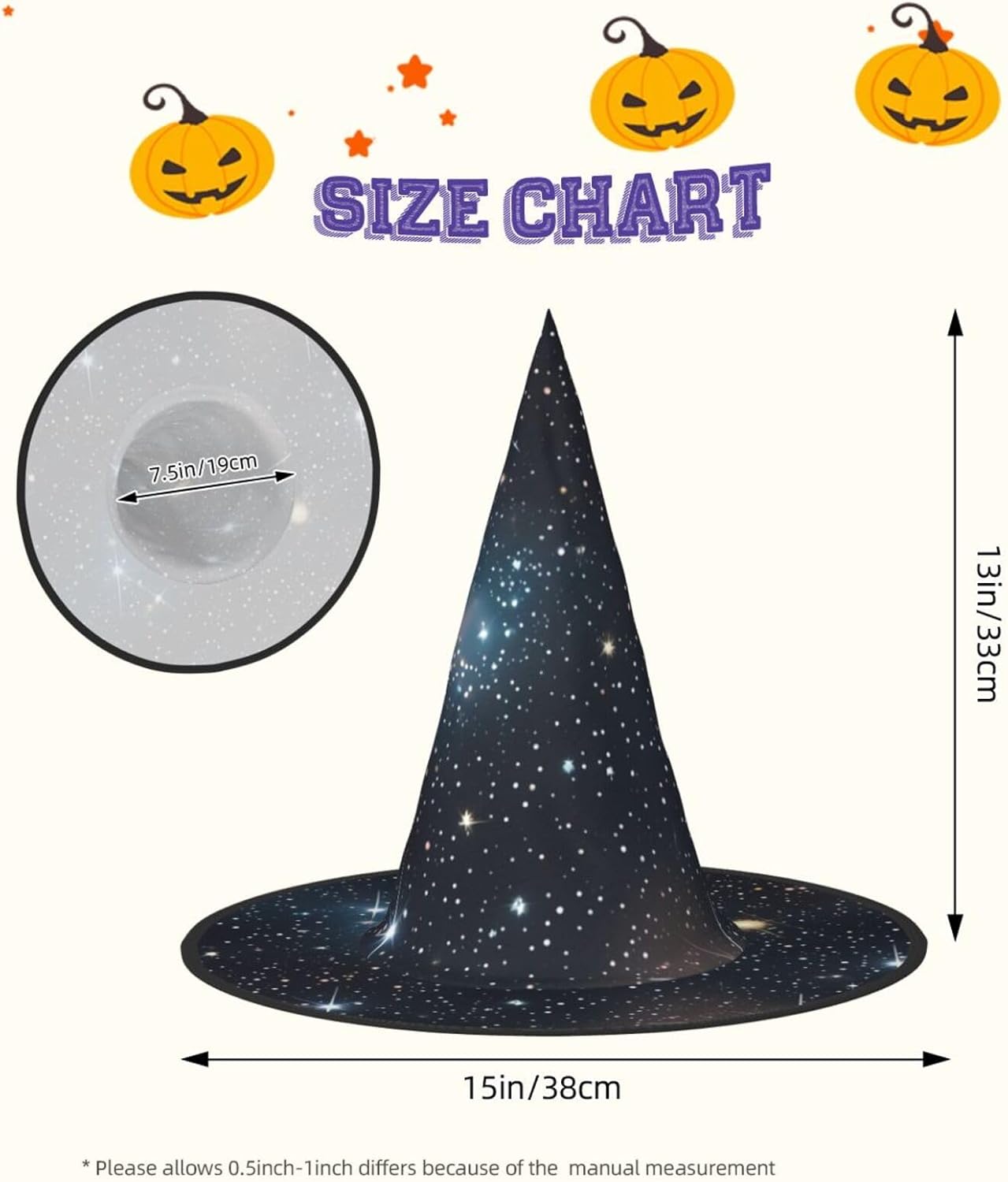 Realizzati in tessuto confortevole, morbido e Oxford, questi cappelli con stampa di galassie a grappoli di stelle sono ideali per Halloween e feste in costume. Il design unico e leggero consente di piegare e torcere le falde del cappello, offrendo una facile conservazione e portabilità. Con una dimensione che si adatta alla maggior parte, questi cappelli di Halloween per uomini e donne con stampa di ammassi di stelle costellazione galassie sono ideali per carnevale, balli in maschera ed eventi di gioco di ruolo. Diventa il centro dell'attenzione in qualsiasi riunione! Inoltre, i nostri cappelli da strega sono facili da pulire: lavare a mano o in lavatrice, asciugare rapidamente e non richiedono candeggina. Festeggia Halloween con stile con i nostri ammassi stellari della costellazione galassie stampa cappelli da strega!