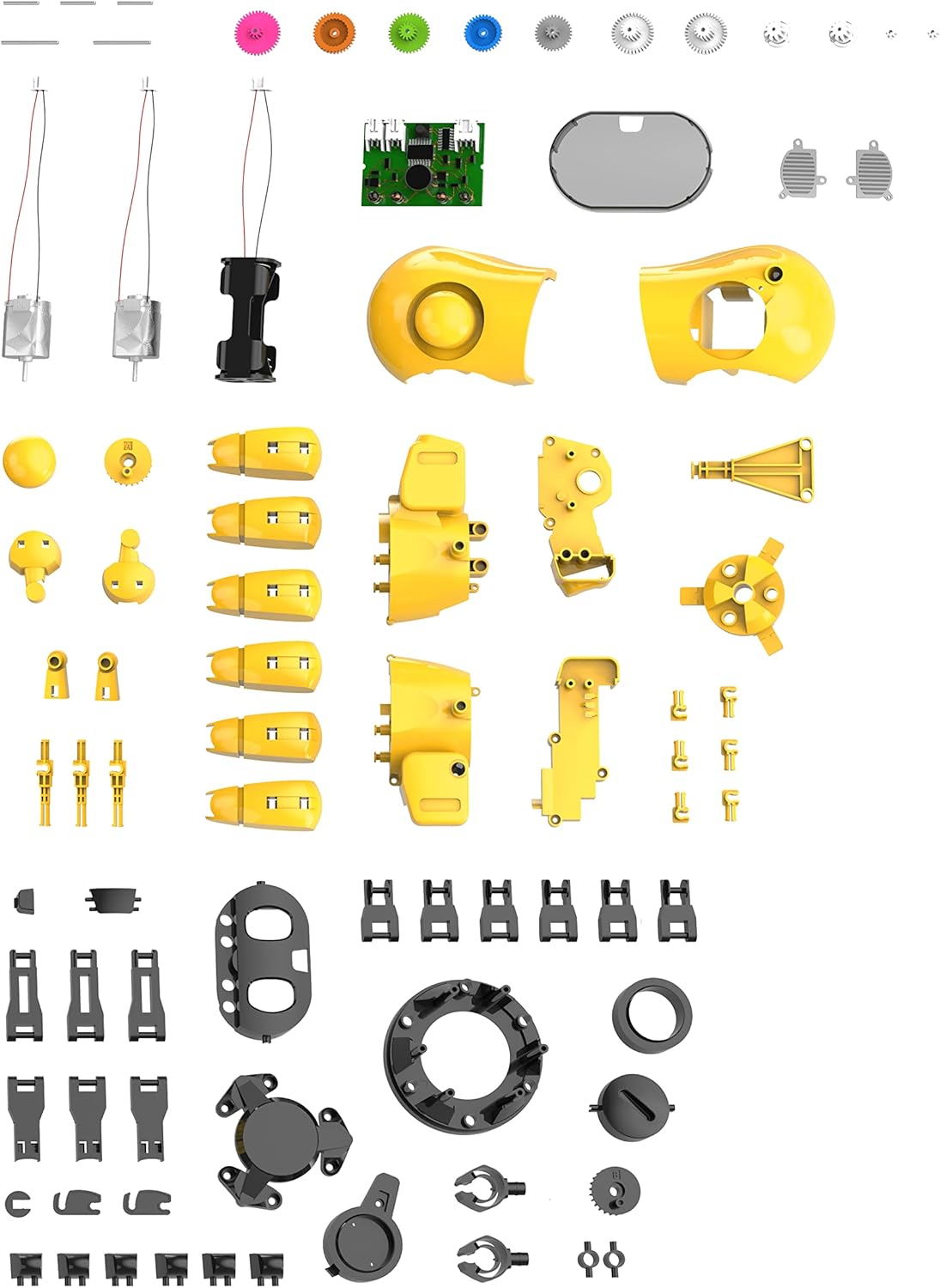 Kit di sperimentazione e progetto di costruzione STEM modellato a iniezione, 114 pezzi Realizzato in resistente plastica ABS e PP con viti in metallo e molle che si agganciano e si avvitano insieme Sistema di guida AI alimentato a batteria che utilizza l'input dai sensori IR per guidare gli ostacoli rotondi di Tobbie Tobbie può essere impostato sul sensore che cerca la modalità "Follow Me" o su Object Evitare la modalità "Esplora il mondo" Il tabbie misura circa 16 cm x 13 cm x 12 cm quando completamente costruito. Consigliato per bambini dagli 8 anni in su Richiede 4 batterie AAA (non incluse). Richiede circa 2,5 ore per crearlo. Richiede alcuni strumenti di base