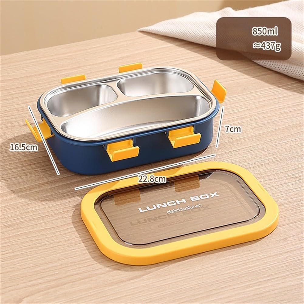Struttura a prova di perdite: ogni scomparto in questo contenitore per il pranzo in acciaio inossidabile dispone di una guarnizione completa per mantenere la freschezza e prevenire fuoriuscite durante il trasporto. [Scomparti spaziosi] Con tre scomparti su misura per piccoli appetiti, può contenere facilmente frutta, panini e pasti leggeri. Semplice manutenzione: il vassoio rimovibile in acciaio inossidabile è lavabile in lavastoviglie per una facile pulizia. Quattro chiusure laterali sicure forniscono una chiusura stretta consentendo un rapido accesso. Pratico per il viaggio: progettato per comodità; tuttavia, tieni presente che il vassoio in acciaio inossidabile non è adatto al microonde.