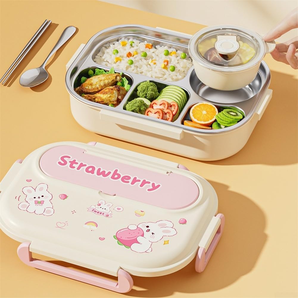 Scomparti a prova di perdite: ogni sezione del portapranzo in acciaio inossidabile assicura che i tuoi pasti rimangano freschi senza mescolare sapori, eliminando il rischio di fuoriuscite durante il viaggio. Design moderno: questo contenitore per il pranzo presenta un design vivace che fonde stile e funzionalità, rendendolo un accessorio accattivante per il lavoro o le avventure all'aperto. [Cinque scomparti] La generosa capacità con cinque scomparti consente di confezionare diversi pasti tra cui frutta e panini per soddisfare le varie esigenze dietetiche. Vassoio lavabile in lavastoviglie: il vassoio rimovibile semplifica la pulizia poiché è lavabile in lavastoviglie. I fermi laterali sicuri forniscono un facile accesso mantenendo il cibo conservato in modo sicuro. [Comodo per tutti] Progettato con cura per stili di vita frenetici, questo portapranzo è perfetto per chi cerca di gustare pasti sani.