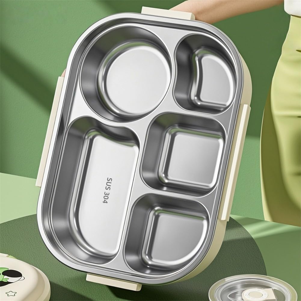 Design multi-scomparti: questo portapranzo in acciaio inossidabile dispone di cinque scomparti separati che mantengono i pasti freschi e organizzati senza mescolare i sapori durante . Moderno ed elegante: con un design vivace, questo contenitore per il pranzo unisce stile e funzionalità, perfetto per pranzi scolastici o pasti in ufficio. [Ampia capacità di conservazione] Dotato di cinque scomparti, offre spazio sufficiente per pasti bilanciati tra cui frutta e panini su misura per diverse esigenze dietetiche. Facile da pulire: il vassoio rimovibile è lavabile in lavastoviglie per una pulizia senza problemi. Quattro robuste chiusure il coperchio rimane sicuro garantendo un facile accesso quando ne hai bisogno. Pratico per l'uso quotidiano: per stili di vita frenetici, questo portapranzo è ideale sia per gli individui che per le famiglie che desiderano opzioni convenienti per i pasti.