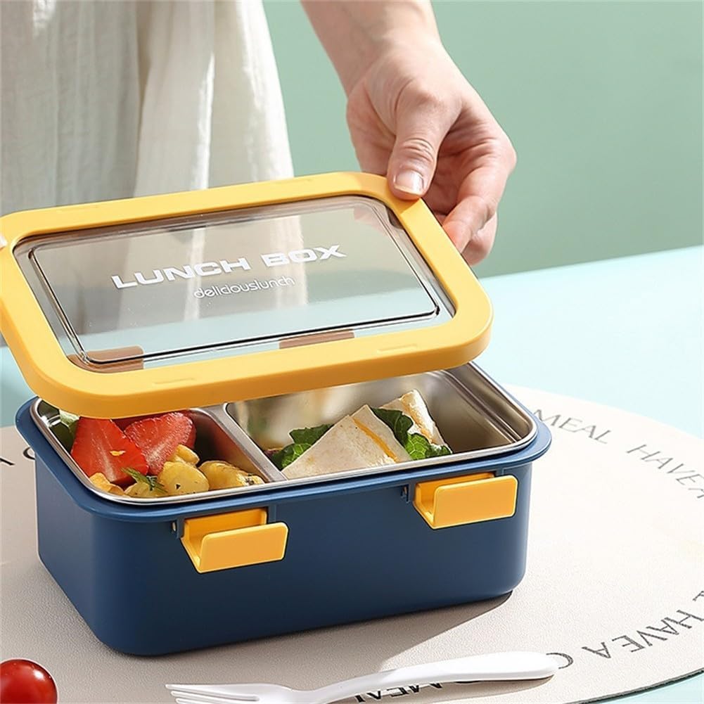 Set completo con doppi scomparti: include una scatola per il pranzo per microonde con due sezioni in acciaio inossidabile completamente separate, che consentono di confezionare una varietà di alimenti per ufficio, scuola o picnic mantenendo i sapori distinti e le porzioni organizzate. Adatto al microonde e alla lavastoviglie: dispone di un vassoio rimovibile in acciaio inossidabile che può essere riscaldato nel microonde e pulito facilmente in lavastoviglie, rendendo la preparazione e la pulizia dei pasti più veloci e convenienti per i lavoratori impegnati. Chiusura a tenuta stagna e sicura: progettata con scomparti completamente sigillati e quattro chiusure laterali rinforzate, questa scatola per il pranzo mantiene il cibo fresco ed evita fuoriuscite, in modo che la borsa rimanga pulita durante i pendolari o i viaggi. Design elegante e vivace: vanta un guscio chic e colorato disponibile in più tonalità, combinando un tocco moderno con una robusta praticità, adatto per adulti e adolescenti in qualsiasi ambiente professionale o casual. Dimensioni compatte e versatili: misura 20,1 x 13,7 x 8,4 cm, si adatta facilmente a zaini o borse per il pranzo, con 2 scomparti per frutta, panini o pasti leggeri;