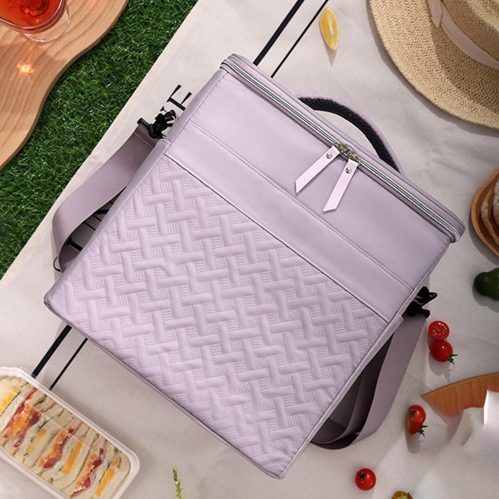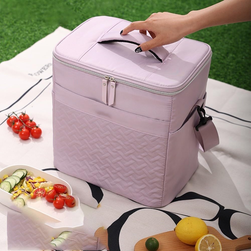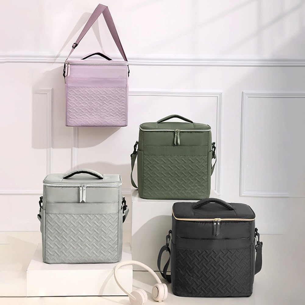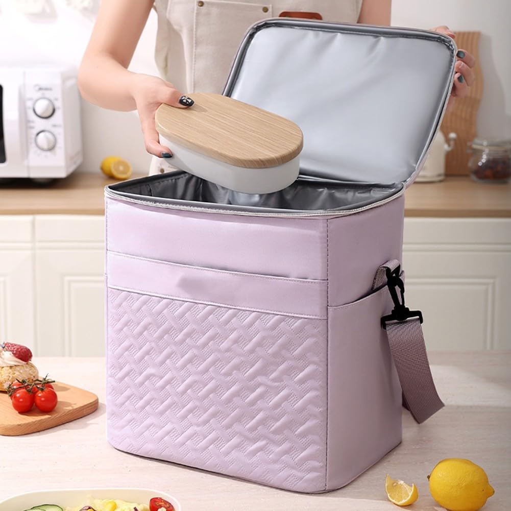 Interno spazioso: le dimensioni generose (12 L x 6 W x 12,6 H) offrono ampio spazio per riporre pranzo, bevande e snack, tutto in una comoda borsa. [TRIPLA ISOLAMENTO] Goditi pasti caldi o freddi fino a 8 ore grazie all'innovativa tecnologia a triplo isolamento riempito con materiale espanso. A prova di perdite: realizzato in resistente fibra di poliestere con una fodera in PEVA a tenuta stagna che protegge contro le fuoriuscite mentre è facile da pulire. [Uso multifunzionale] Il design leggero con una tracolla regolabile lo rende perfetto per pranzi di lavoro, picnic o anche per la spesa. Aspetto alla moda: un'aggiunta elegante alla tua routine quotidiana che migliora la tua esperienza pasto pur essendo un premuroso per amici e familiari.