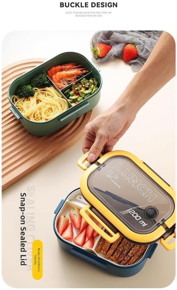 [Struttura a tre scomparti] Caratterizzato da un design a tre scomparti, questo portapranzo assicura che i diversi piatti rimangano separati per mantenere i loro sapori distinti per una deliziosa esperienza pasto. Struttura in materiale robusto: realizzato in plastica PP, questo portapranzo è progettato per resistere all'usura quotidiana, fornendo prestazioni affidabili per la preparazione dei pasti. Guarnizione sicura a prova di perdite: con tecnologia avanzata di guarnizione in silicone e robuste fibbie di bloccaggio, i tuoi pasti rimangono freschi e senza disordine durante il trasporto con fiducia. [Adatto a microonde e lavastoviglie] Comodamente sicuro sia per microonde che per lavastoviglie, rendendo facile riscaldare i pasti o pulire dopo averli gustati. Progettato per gli stili di vita in movimento: sia al lavoro che in viaggio, questo portapranzo portatile ti consente di assaporare pasti sani cucinati in casa ovunque la vita ti porti.