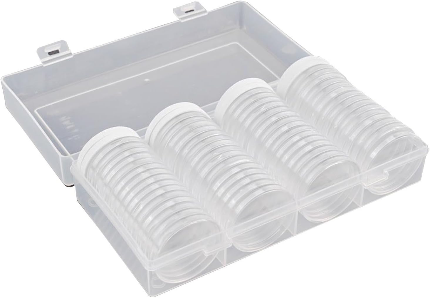 Organizer per la raccolta di monete: questo contenitore è progettato specificamente per organizzare e proteggere le monete, fornendo una soluzione sicura e organizzata per monete preziose. 【 Resistente ai graffi 】Realizzato in materiale plastico ispessito, questi portamonete sono resistenti ai graffi, protezione duratura per le vostre monete. Fodera in schiuma regolabile: ogni portamonete viene fornito con un rivestimento in schiuma regolabile, che consente di personalizzare gli scomparti per adattarsi a monete di diversi diametri, una vestibilità aderente e sicura. Molteplici dimensioni delle monete: questi porta capsule sono adatti per monete con diametri di 17 mm, 20 mm, 25 mm, 27 mm, 30 mm, 33 mm, 38 mm e 40 mm, fornendo versatilità e la possibilità di riporre monete di diverse dimensioni nella scatola.