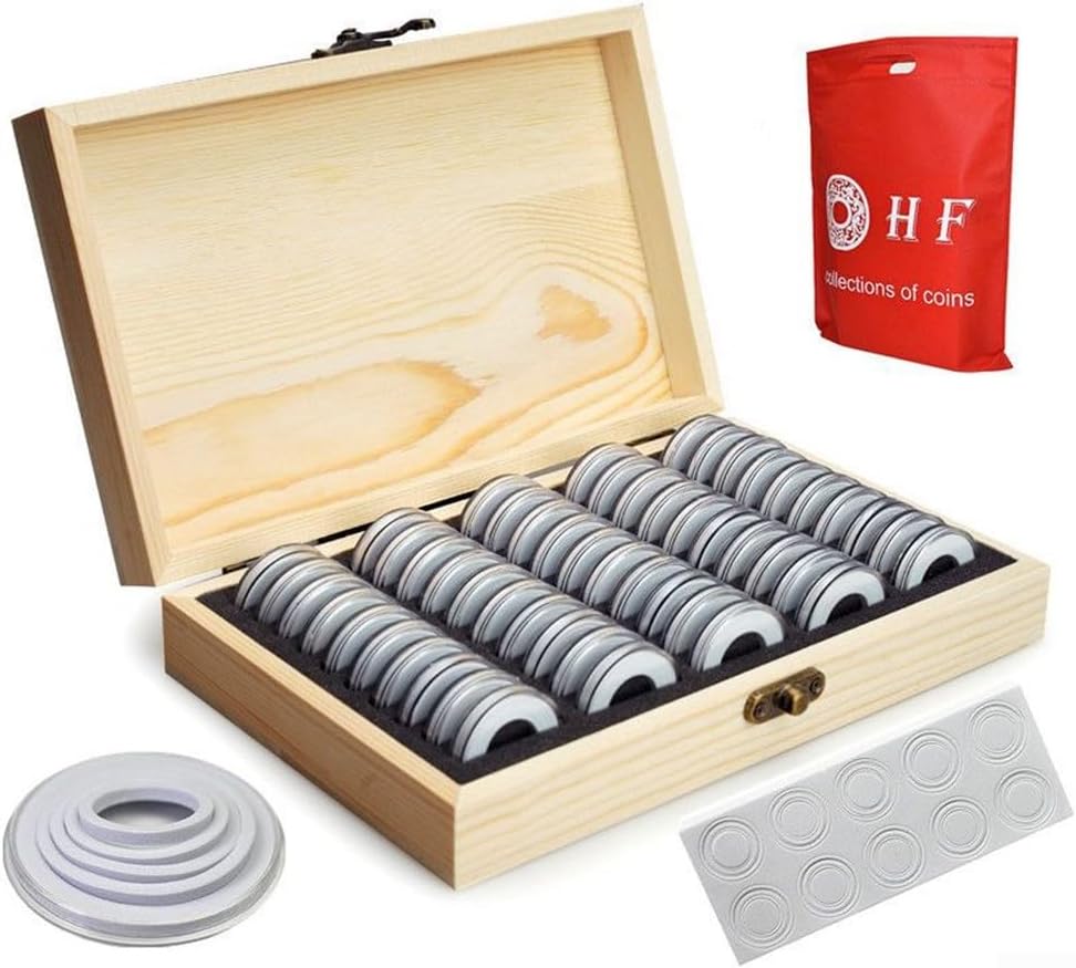 Portamonete regolabile: questo contenitore in legno dispone di un sistema di regolazione intelligente, che può ospitare 30/50/100 monete da 12 mm a 46 mm di diametro. Gli slot personalizzabili assicurano che le tue preziose monete commemorative siano organizzate in modo sicuro e splendidamente presentate in questa versatile custodia da collezione. Design vintage e protezione del castello: mostra la tua collezione in questo portamonete in legno finemente intagliato con un elegante motivo vintage a castello. La struttura a doppio strato fornisce una maggiore protezione contro l'ossidazione, mantenendo le monete in perfette condizioni per una visualizzazione e una conservazione di lunga durata. FUNZIONALITÀ DI APERTURA MEZZALLA: progettata con comode aperture a mezzaluna per un facile inserimento e rimozione delle monete. La funzione di regolazione regolare consente di posizionare perfettamente ogni moneta senza graffiare o danneggiare la superficie, rendendo la riorganizzazione semplice e senza stress. Soluzione organizzata: mantieni la tua collezione di monete ordinatamente organizzata con questa elegante soluzione di archiviazione. Il design compartimentato impedisce alle monete di toccarsi, riducendo il rischio di graffi e danni mantenendo un aspetto pulito e di qualità museale per i tuoi pezzi di valore. Set completo da esposizione: include 1 custodia in legno con 30/50/100 fessure protettive (in base alle dimensioni) e tappetini di regolazione corrispondenti. Nota: Monete non incluse. Perfetto per i collezionisti che cercano un modo attraente e funzionale per organizzare e mostrare i loro tesori numismatici.