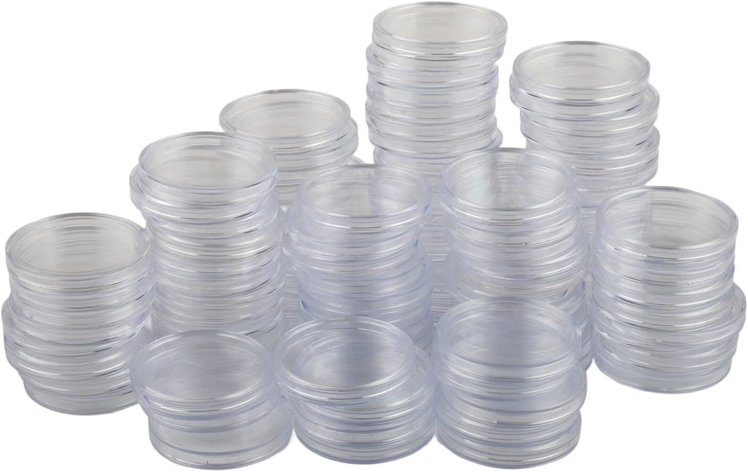 Scatola portaoggetti per monete: 100 capsule rotonde in plastica da 39 mm per conservare in modo sicuro e organizzato la raccolta durante i viaggi o a casa Design trasparente: le superfici in plastica trasparente consentono una facile identificazione del contenuto e un accesso rapido senza rischio di confusione o perdita Chiusura sicura: la base e il labbro saldamente uniti assicurano una protezione duratura contro polvere, umidità ed erosione per mantenersi in perfette condizioni Compatto e portatile: il set di supporti leggeri è adatto per riporre perline, piccoli gingilli o capsule con comodo trasporto in qualsiasi borsa Riutilizzabile e facile da pulire: liscio, resistente agli accumuli e consente un lavaggio immediato dopo l'uso per una manutenzione continua