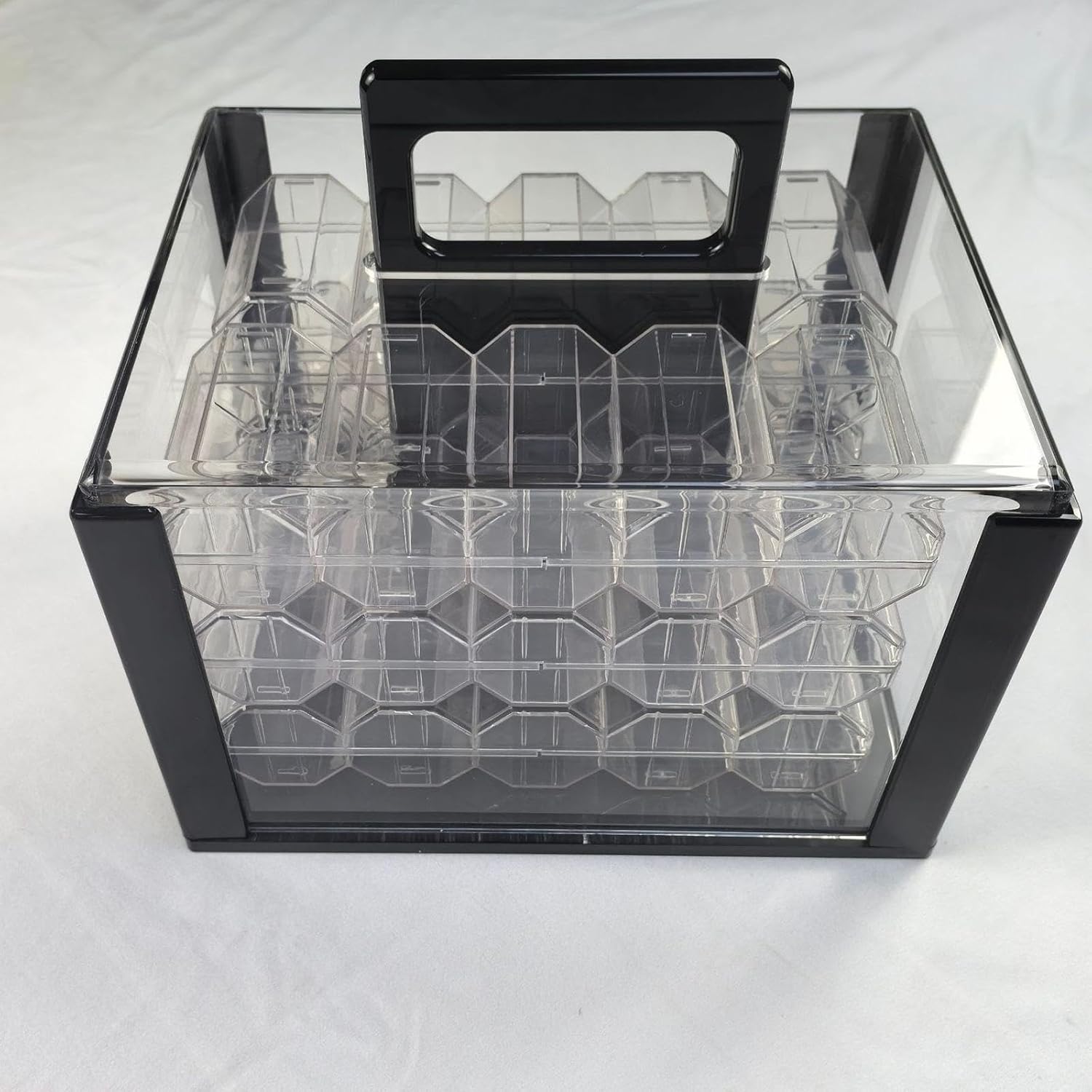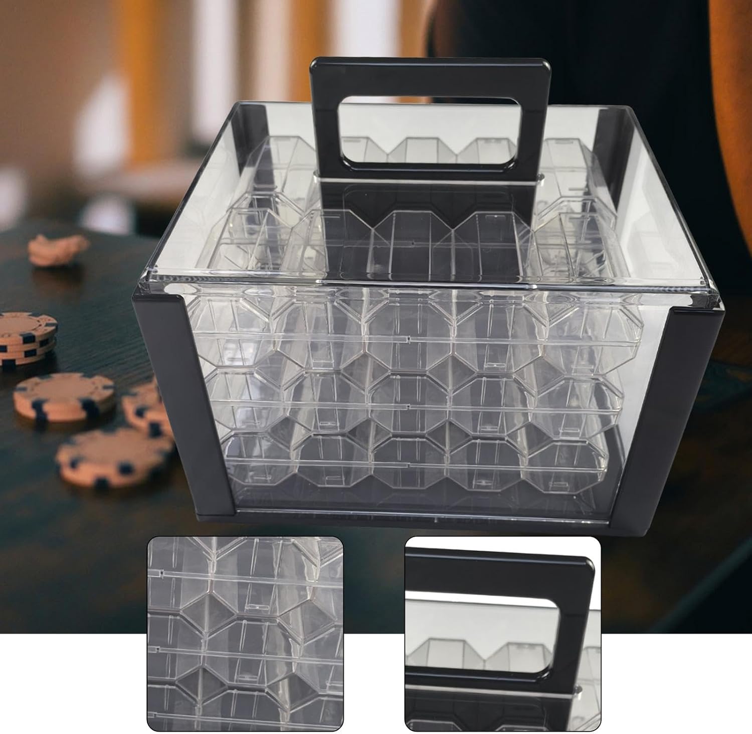 【Dimensioni del prodotto】: Custodia trasparente per capacità di 600 chip, circa 24 cm x 19 cm x 16 cm / 9,45 pollici x 7,48 pollici x 6,30 pollici. (Nota: NON include i chip) 【Materiale di alta qualità】: questo porta chip trasparente è realizzato in materiale acrilico di alta qualità, robusto, resistente alle cadute graffi, non si rompe facilmente e garantisce un lungo periodo di utilizzo 【Design portatile】: il porta chip è dotato di una maniglia portatile, è facile da trasportare e spostare ed è affidabile da usare, proteggendo i chip da polvere, danni e perdite 【Ampiamente utilizzato】: il contenitore per l'organizzazione delle patatine è adatto per la disposizione degli oggetti da gioco durante le riunioni di famiglia ed è adatto anche per attività commerciali, bar, giochi e altre occasioni 【Funzioni multiple】: scatola di immagazzinaggio multiuso, che fornisce un modo organizzato per conservare ed esporre i tuoi chip e può anche conservare strumenti, e altri oggetti