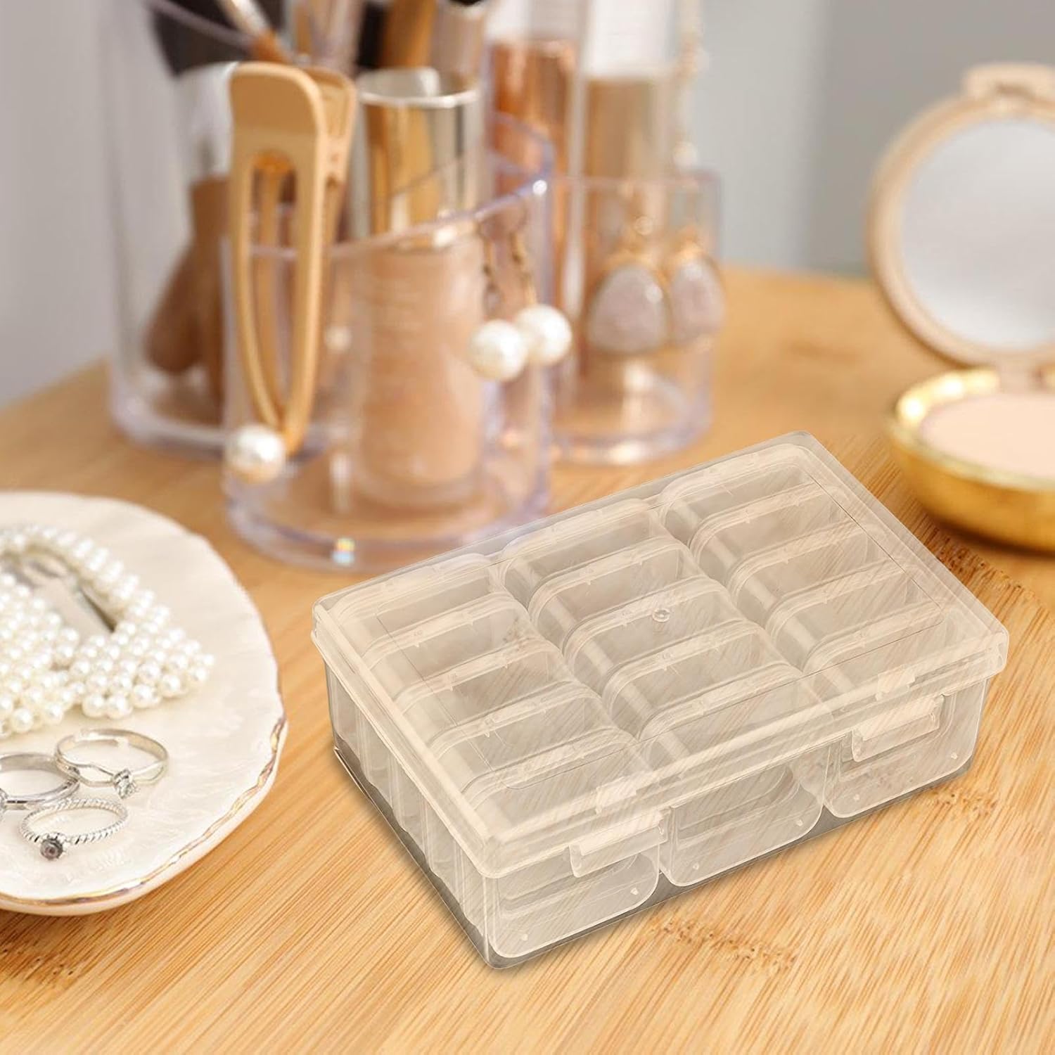Abbastanza spazio: organizza i tuoi tesori con la grande scatola trasparente e il coperchio. PC robusto: realizzato in materiale PC di alta qualità con angoli arrotondati. Questo piccolo organizer per perline garantisce un utilizzo robusto e sicuro senza odori sgradevoli Rimani organizzato: ogni piccolo contenitore è saldamente al suo posto, quindi non devi più preoccuparti che il contenitore si ribalti Ricerca rapida: il design chiaro ti consente di vedere facilmente l'interno, consentendo un accesso rapido e una facile selezione di articoli specifici nell'organizzatore Ampiamente usato: utilizza questo efficiente organizer per semplificare la conservazione di piccoli oggetti come perline, viti, strass e garantire un facile accesso e una classificazione ordinata.