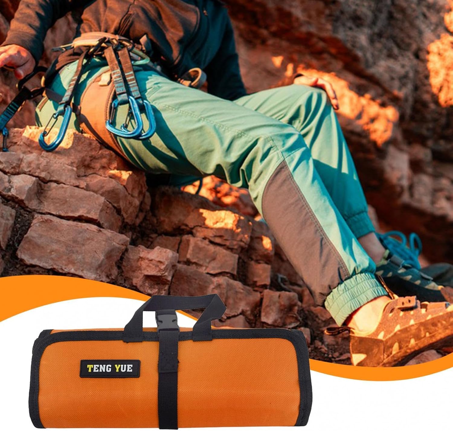 【Design versatile】: questa borsa portaoggetti sospesa presenta un design multifunzionale con più scomparti per riporre facilmente ganci, moschettoni e altre attrezzature 【Materiale di qualità】: questa borsa per rinvii da arrampicata è realizzata in tessuto oxford di qualità, resistente all'usura, robusto, antistrappo, arrotolabile, impermeabile e può essere utilizzata ripetutamente per lungo tempo 【Ampia applicazione】: questo porta-attrezzi con moschettone è molto adatto per attività all'aperto come campeggio, viaggi, escursionismo, zaino in spalla, pesca, ecc. 【Dimensioni comode】: le dimensioni di questa borsa da ricevimento sono 82 cm x 27 cm / 32,28 pollici x 10,63 pollici, compatta, leggera e portatile 【Facile da usare】: questa custodia portautensili è dotata di fibbia a sgancio rapido e maniglia e può essere utilizzata anche per riporre piccoli oggetti come asciugamani per un facile utilizzo