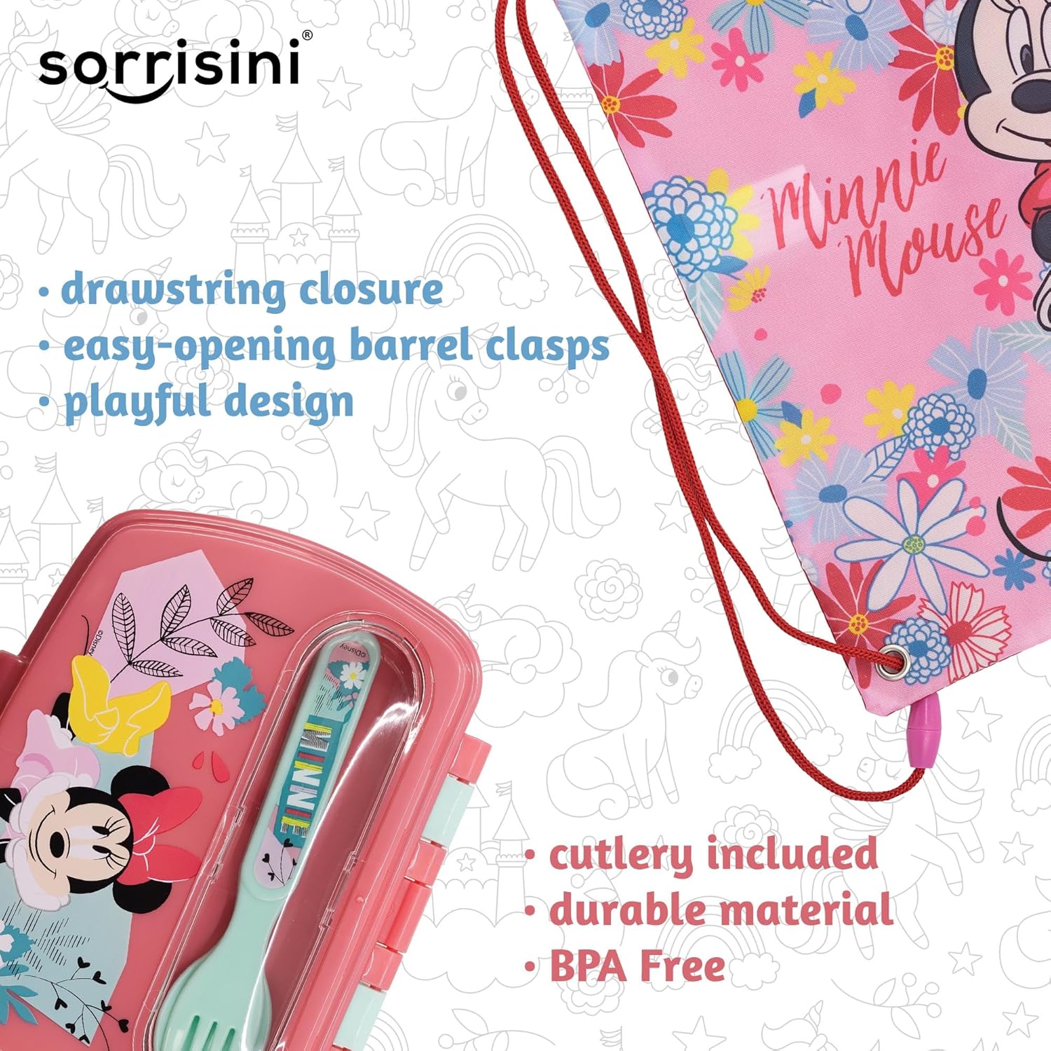 Pratico contenitore per pranzo: Questo set include un contenitore termico per pranzo con posate, ideale per portare il pranzo a scuola o in gita. Design accattivante: Decorato con l'amata Minnie Mouse, questo set renderà felici i bambini. Zaino per la ginnastica: Incluso uno zaino per riporre comodamente il contenitore e gli altri oggetti necessari. Materiali sicuri: Realizzato con materiali atossici e sicuri per i bambini. Dimensioni compatte: Misure contenute per un facile trasporto ovunque. Soddisfazione del cliente garantita: Siamo qui per consegnare prodotti di alta qualità e spedizione rapida. Se hai domande contattaci. Fai clic sul pulsante "Aggiungi al carrello" ora.