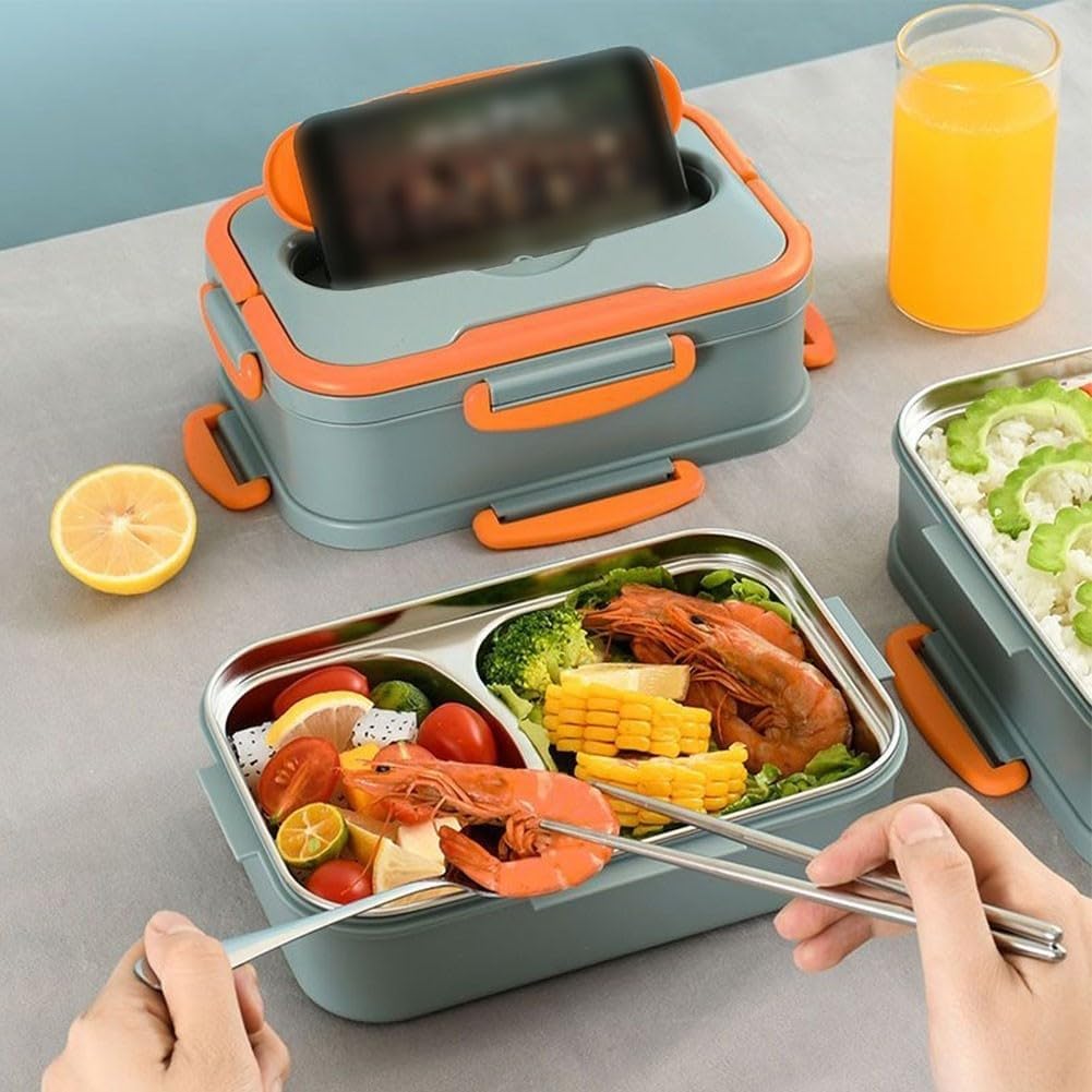 Design facile da usare: realizzato in acciaio inossidabile 304 e materiale PP spesso, questo portapranzo include un comodo spazio per riporre bacchette e cucchiaio. [Affidabile resistenza alle perdite] Dotato di guarnizioni in silicone avanzate e fibbie di sicurezza, il cibo rimane al sicuro senza fuoriuscite o disordine durante il viaggio. [Uso] Riscaldare facilmente il cibo utilizzando un forno a microonde o acqua calda. La pulizia è un gioco da ragazzi in quanto è lavabile in lavastoviglie! [Scelte alla moda] Scegli tra strati singoli, doppi o tripli disponibili in grigio chic, arancione vibrante o blu freddo per esprimere il tuo stile.