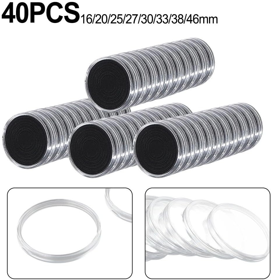Capsule sicure per la conservazione delle monete: queste capsule trasparenti per monete forniscono una custodia protettiva compatibile con la tua preziosa collezione di monete, proteggendo dall'ossidazione della polvere e dai danni fisici mantenendo una perfetta visibilità. Compatibile con per esposizione e ispezione Sistema di guarnizione regolabile: ogni capsula per monete dispone di una guarnizione nera regolabile che può essere adatta saldamente da 16 mm a 46 mm di diametro, comprese le dimensioni 16 mm, 20 mm, 25 mm, 27 mm, 30 mm, 33 mm, 38 mm e 46 mm Materiale di qualità: realizzate in materiale plastico ispessito di lunga durata, queste capsule per monete offrono una protezione robusta e affidabile con un design trasparente che mette in mostra il tuo mantenendole al sicuro dagli elementi Set da 40 pezzi: questo set include 40 contenitori singoli per capsule per monete, ognuna dotata di guarnizione nera che fornisce ampio spazio di archiviazione. Compatibile con per organizzare e proteggere l'intera collezione di monete in modo efficiente Design compatto e portatile: il design leggero di queste capsule per monete le rende perfette per riporre in vetrine album o casseforti pur rimanendo facilmente portatili. Compatibile con spettacoli commerciali o momenti di viaggio