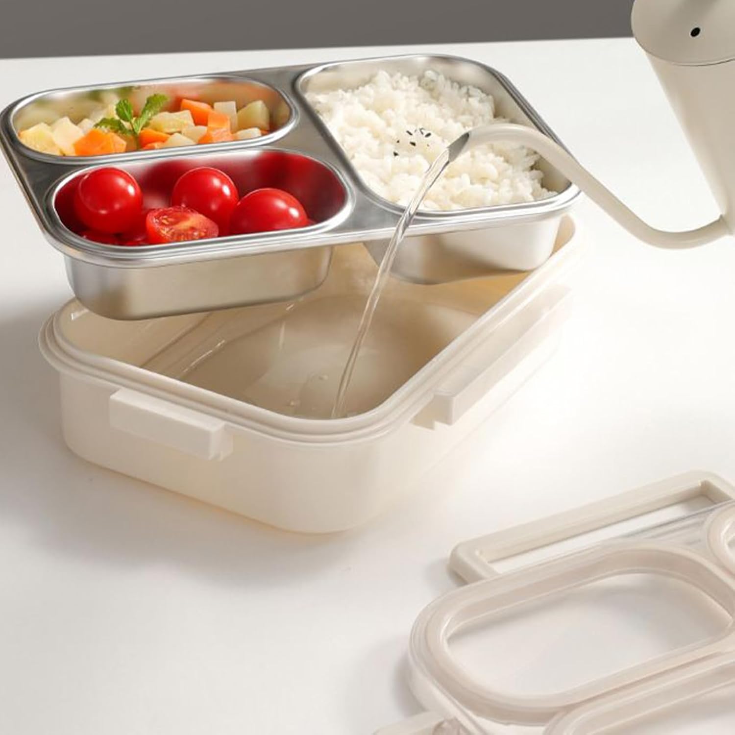 Layout funzionale: I tre comparti distinti ottimizzano lo stoccaggio del cibo scongiurando contaminazioni di odori e mantenendo l'integrità degli alimenti, offrendo versatilità nella pianificazione dei pasti quotidiani e speciali Pulizia senza sforzo: La superficie liscia e antiaderente previene l'accumulo di residui e macchie, consentendo una pulizia immediata con acqua e sapone senza necessità di strofinare intensamente Pratico da Trasportare: Grazie alle dimensioni compatte per gli zaini e al design sottile, questa costruzione leggera assicura un trasporto facile durante i viaggi e le gite, mantenendo un'estetica moderna che si adatta a vari stili di vita senza occupare spazio inutile Tenuta Stagna: Progettazione a doppia tenuta con sigillo in silicone alimentare garantisce prestazioni antigoccia e sicurezza durante il trasporto, ideale per l'uso quotidiano in movimento grazie alla costruzione resistente e affidabile Tecnologia Ritenzione Calore: L'isolamento a doppia parete trattiene efficacemente il calore mantenendo il cibo caldo e fresco a temperatura ottimale per periodi prolungati garantendo perfetti fino al consumo