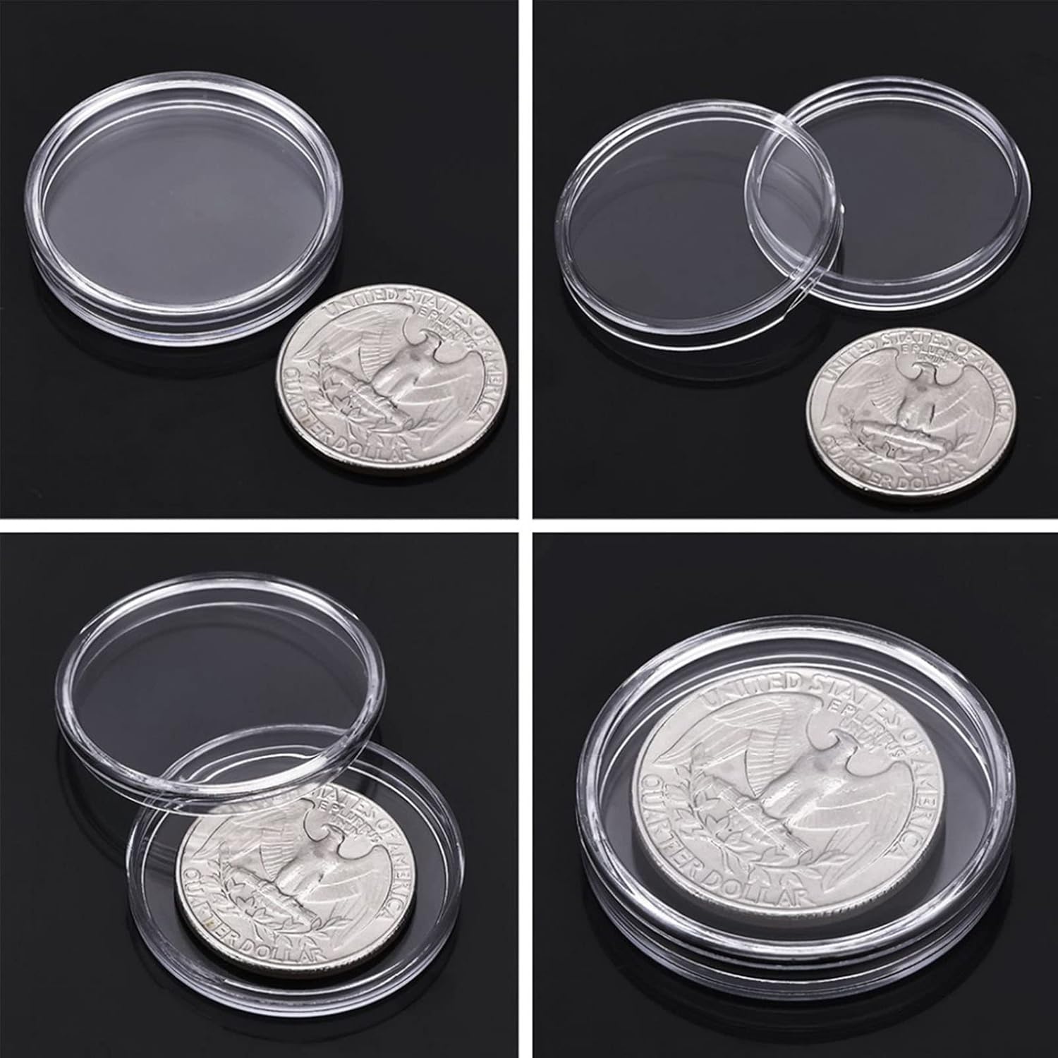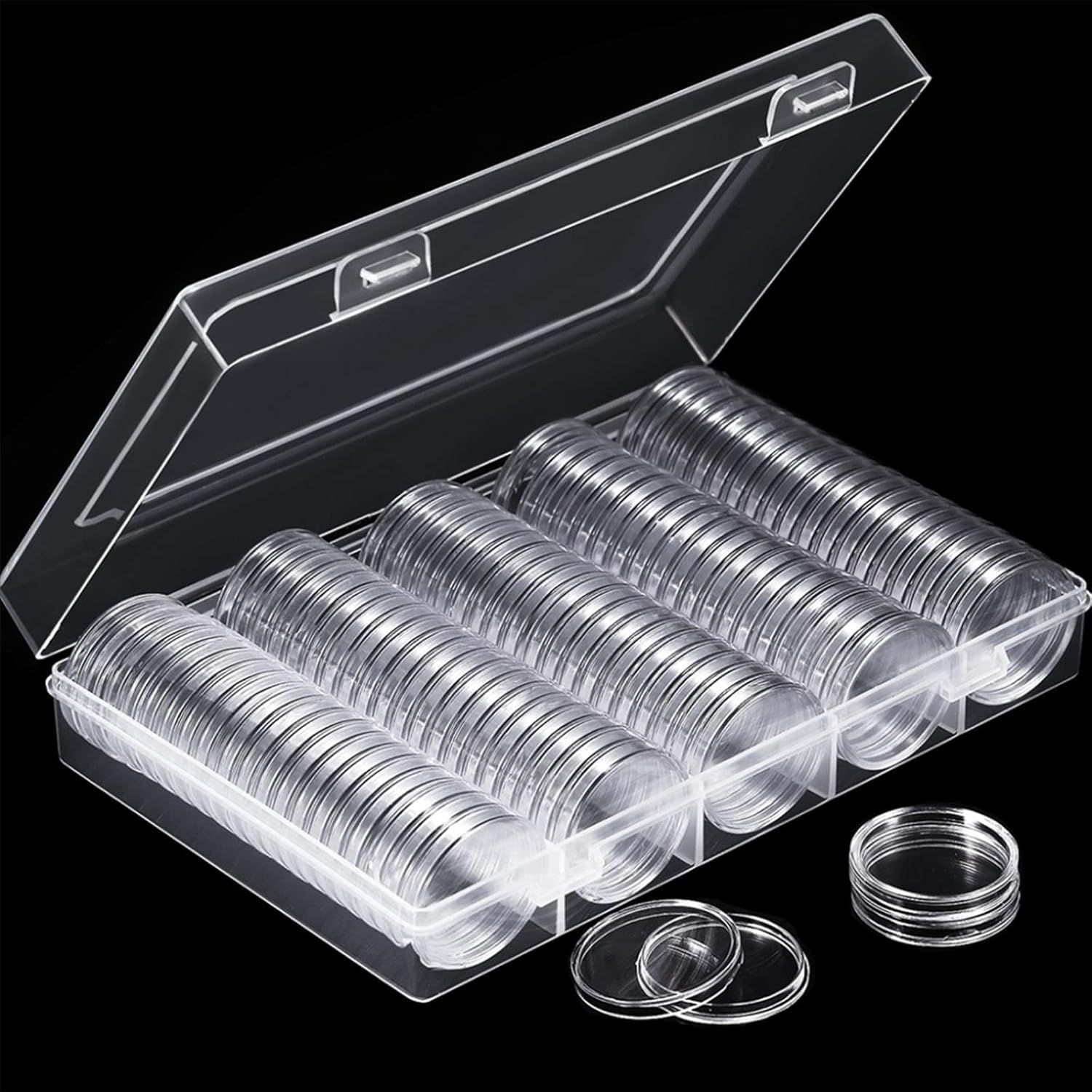 Guarnizioni in schiuma EVA in 5 misure: (17/20/25/27/30 mm) diverse guarnizioni in schiuma EVA possono contenere monete più popolari non più grandi di 30 mm, è facile separare gli anelli in schiuma dall'imbottitura, fissare la moneta e impedire loro di abrasione e scivolamento. Sigillatura fine: la copertura e la base di queste capsule per monete si agganciano saldamente insieme, antipolvere e antiossidanti, ottime come protezioni per monete; il design con apertura a mezzaluna lo rende comodo da usare. Materiale durevole: plastica ispessita, portamonete resistente, con design ad angolo rotondo sicuro, liscio al tatto e tenuto. Quantità: 100 portamonete rotondi in plastica trasparente, sufficienti per riporre molte monete; il corpo trasparente consente di vedere facilmente le cose all'interno. Bel regalo: i contenitori trasparenti per monete conducono alla conservazione delle monete, alla visualizzazione e allo scambio, ottimo regalo per i collezionisti di monete per proteggere e conservare le sue monete preferite.