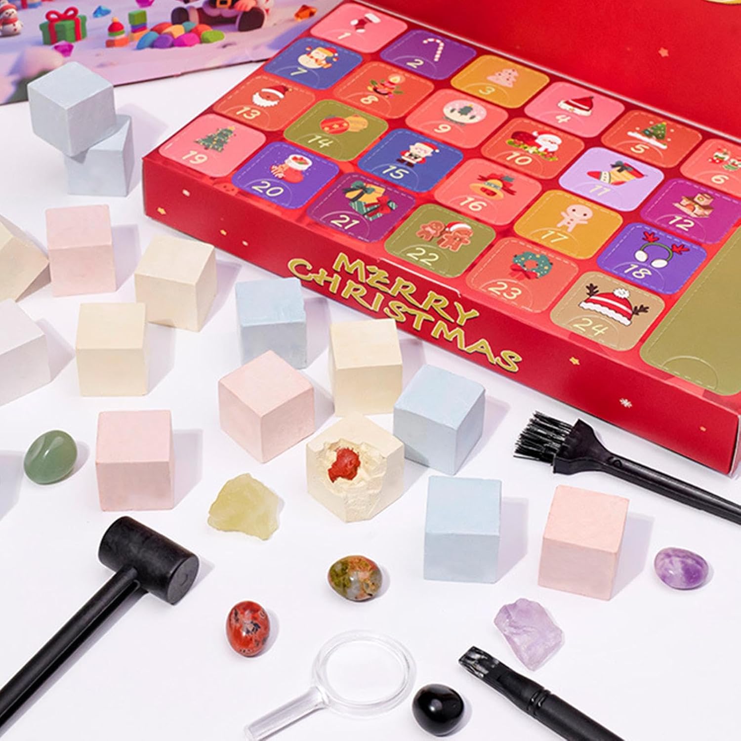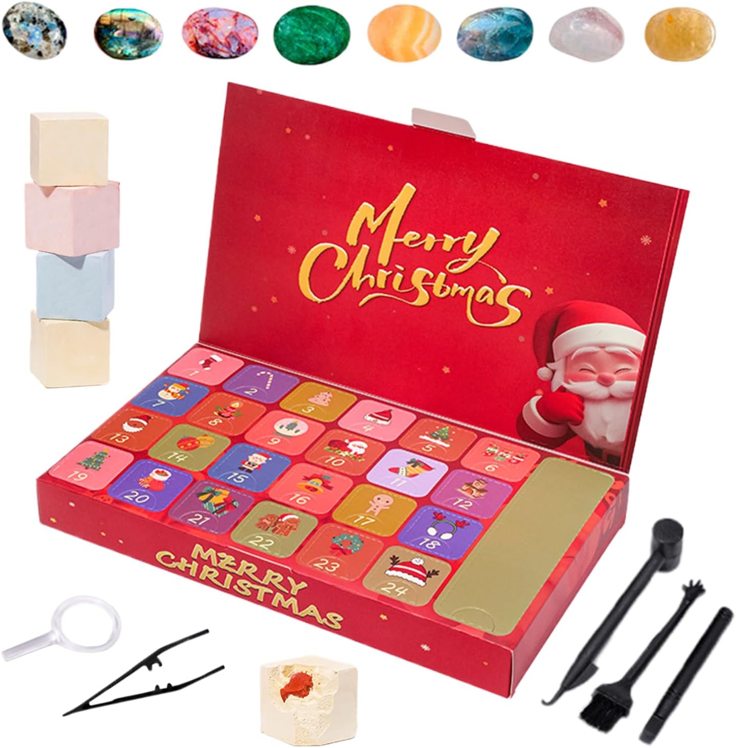 Calendario giornaliero delle scoperte: dotato di 24 cassetti per una deliziosa esperienza di conto alla rovescia natalizia, questo calendario incoraggia l'esplorazione e la scoperta dei cristalli, creando entusiasmo festivo giorno dopo giorno. perfetto per i giovani esploratori, per godersi il gioco interattivo alla scoperta dei tesori naturali. 【Aumenta la gioia natalizia】 Questo calendario per il conto alla rovescia di Natale con i suoi ornamenti decorativi e pietre espositive aggiungerà calore alla decorazione festiva della tua casa creando un'atmosfera accogliente per la stagione. attività di smistamento e classificazione, favorendo momenti gioiosi e rafforzando le connessioni genitore-figlio per indimenticabili conti alla rovescia di Natale
