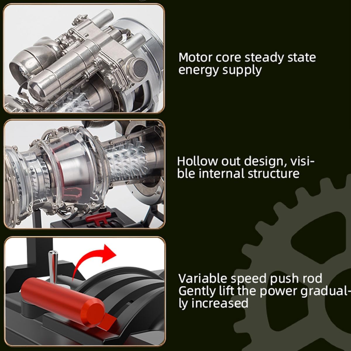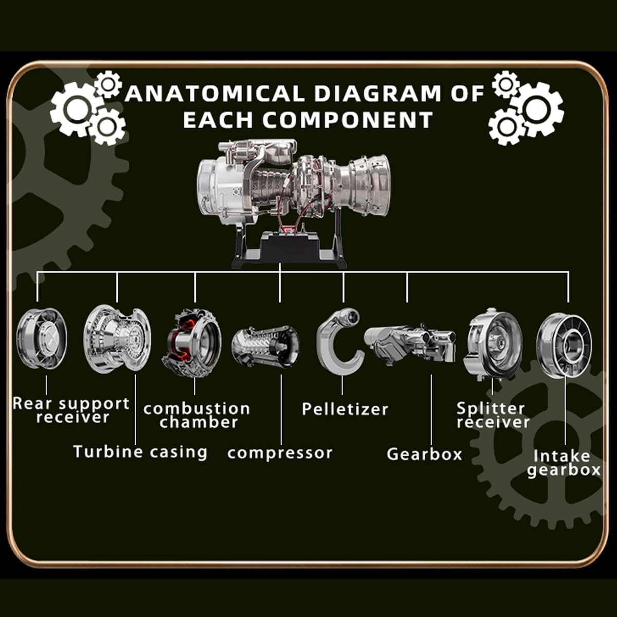 Capolavoro di precisione tecnica: realizzato in lega di alluminio di alta qualità e acciaio inossidabile, questo modello di motore turbo in scala 1:4 è una replica dettagliata con oltre 470 componenti lavorati e mostra la bellezza dell'industria e della tecnologia aeronautica Simulazione realistica del modello di motore: prova il brivido della tecnologia aerospaziale! Dotato di un potente motore, questo modello imita la rotazione dinamica di un vero motore turbo ed è quindi una vera meraviglia della tecnologia Affascinante kit fai da te: questo sofisticato kit con un livello di difficoltà di quattro stelle è stato progettato per gli amanti del fai da te e offre oltre quattro ore di emozionante assemblaggio. Perfetto per migliorare le capacità tecniche e allo stesso tempo avere un'esperienza di costruzione gratificante Kit completo e di precisione: apri la scatola e inizia subito a montarlo! La confezione di alta qualità contiene tutti i componenti, utensili speciali e istruzioni dettagliate che garantiscono una costruzione fluida e soddisfacente Miglior display da collezione e regalo: più di un semplice modello questo è un capolavoro meccanico! Un display da tavolo perfetto per collezionisti, appassionati di aviazione e professionisti STEM, un regalo indimenticabile per ogni occasione