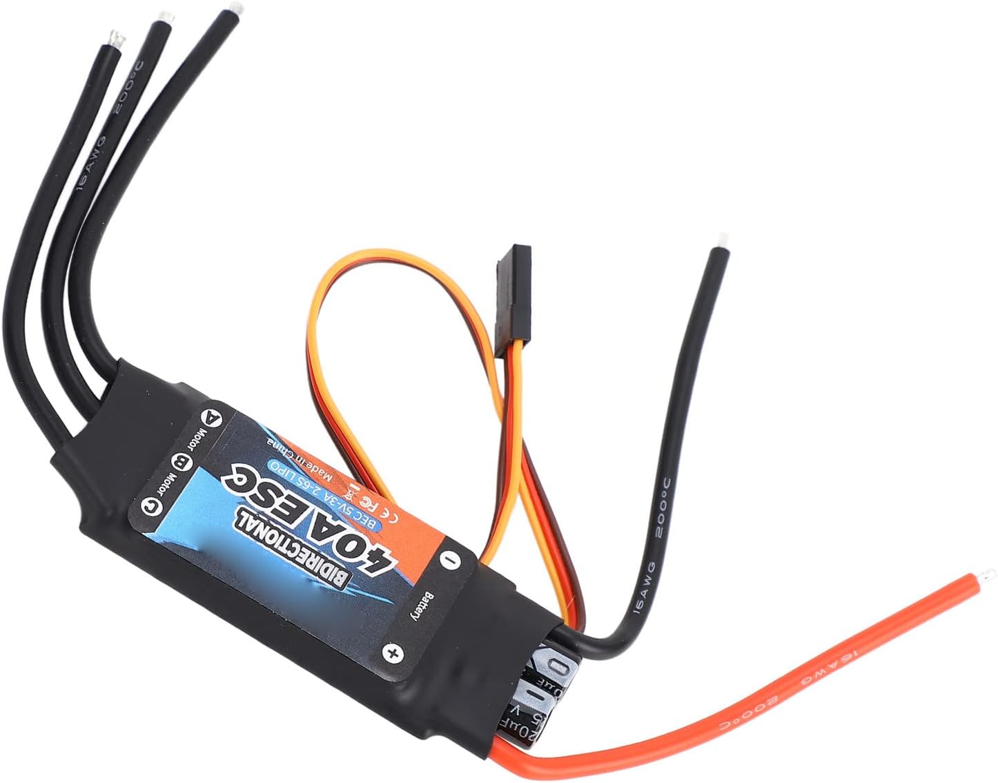 [RISPOSTA RAPIDA] Sperimenta la risposta incredibilmente rapida del controller brushless bidirezionale da 40 A. Con la sua erogazione di potenza 1:1 a 2 vie, la funzione di inversione diretta e la manovrabilità sensibile, questo ESC garantisce prestazioni veloci e fluide. [PLUG AND PLAY] Il controller brushless bidirezionale da 40 A facile da installare elimina il fastidio di calibrare la corsa dell'acceleratore. Basta collegarlo e iniziare. Mettilo in funzione in pochissimo tempo. [AMPIA APPLICAZIONE] Scopri la versatilità del regolatore brushless bidirezionale da 40 A. Perfetto per auto RC, barche, barche RC e propulsori subacquei, questo controller è pronto per qualsiasi avventura. [BEC POTENTE] Dotato di un BEC da 5 V 3 A, il regolatore brushless bidirezionale da 40 A offre una corrente continua di 40 A e supporta batterie lipo 2-6S. Goditi potenza affidabile e prestazioni ottimali. [PRESTAZIONI AFFIDABILI] Il controller brushless bidirezionale da 40 A è costituito da componenti elettronici importati ed è stato accuratamente testato con prestazioni complete. Garantisce durata e affidabilità per tutte le esigenze del tuo motore RC brushless.