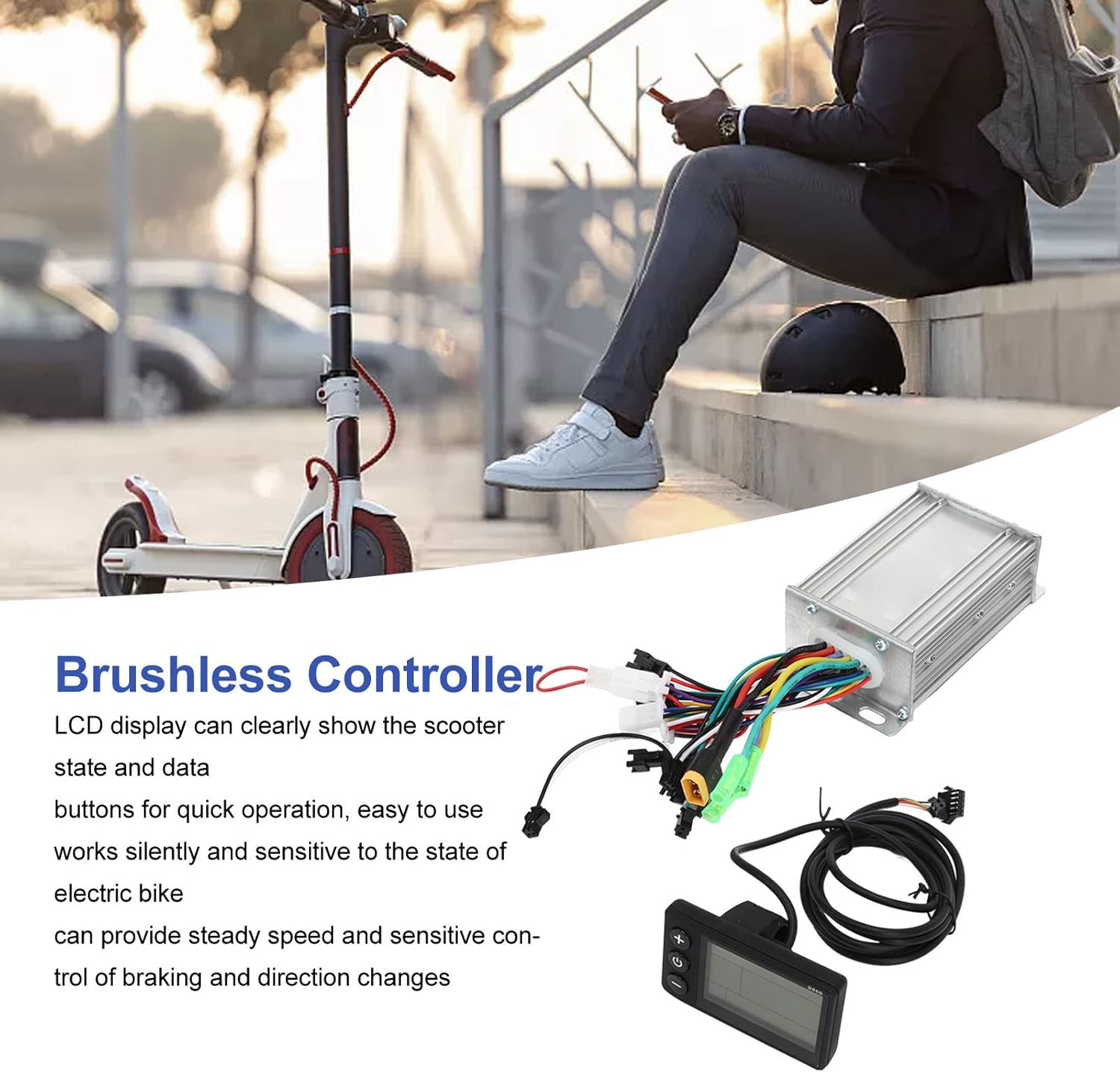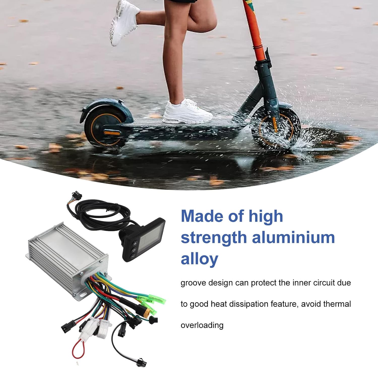 COMODO DISPLAY LCD: il nostro controller di velocità per scooter elettrico è dotato di un display LCD di facile lettura. Grazie all'interfaccia chiara e intuitiva, puoi monitorare facilmente lo stato e i dati dello scooter in tempo reale. I pulsanti di controllo rapido garantiscono un funzionamento intuitivo. MOTORE BRUSHLESS AD ALTE PRESTAZIONI: il controller di velocità del motore brushless è progettato per le massime prestazioni. Il suo design senza spazzole funziona in modo silenzioso ed efficiente, consentendo un controllo preciso della tua bici elettrica. Goditi una guida fluida e uniforme con frenata reattiva e manovrabilità. PARAMETRI DETTAGLIATI: Questo controller è disponibile in più opzioni di tensione tra cui 36 V, 48 V e 60 V, con potenze nominali di 350 W e 450 W. Presenta un limite di corrente di 18 A ed è dotato di cablaggio resistente alle alte temperature per maggiore sicurezza e affidabilità. L'installazione è semplicissima, rendendolo adatto a varie bici e scooter elettrici. EFFICACE DISSIPAZIONE DEL CALORE: Realizzato in lega di alluminio ad alta resistenza, il nostro controller è dotato di una scanalatura per un'eccellente dissipazione del calore. Questa caratteristica protegge i circuiti interni dal surriscaldamento, garantendo prestazioni e durata ottimali, anche durante un uso prolungato. GRANDE COMPATIBILITÀ: questo controller di velocità del motore brushless è un accessorio versatile adatto a bici elettriche, scooter e vari veicoli elettrici. Migliora le prestazioni e il controllo del tuo veicolo, rendendolo un componente essenziale per gli appassionati della mobilità elettrica.