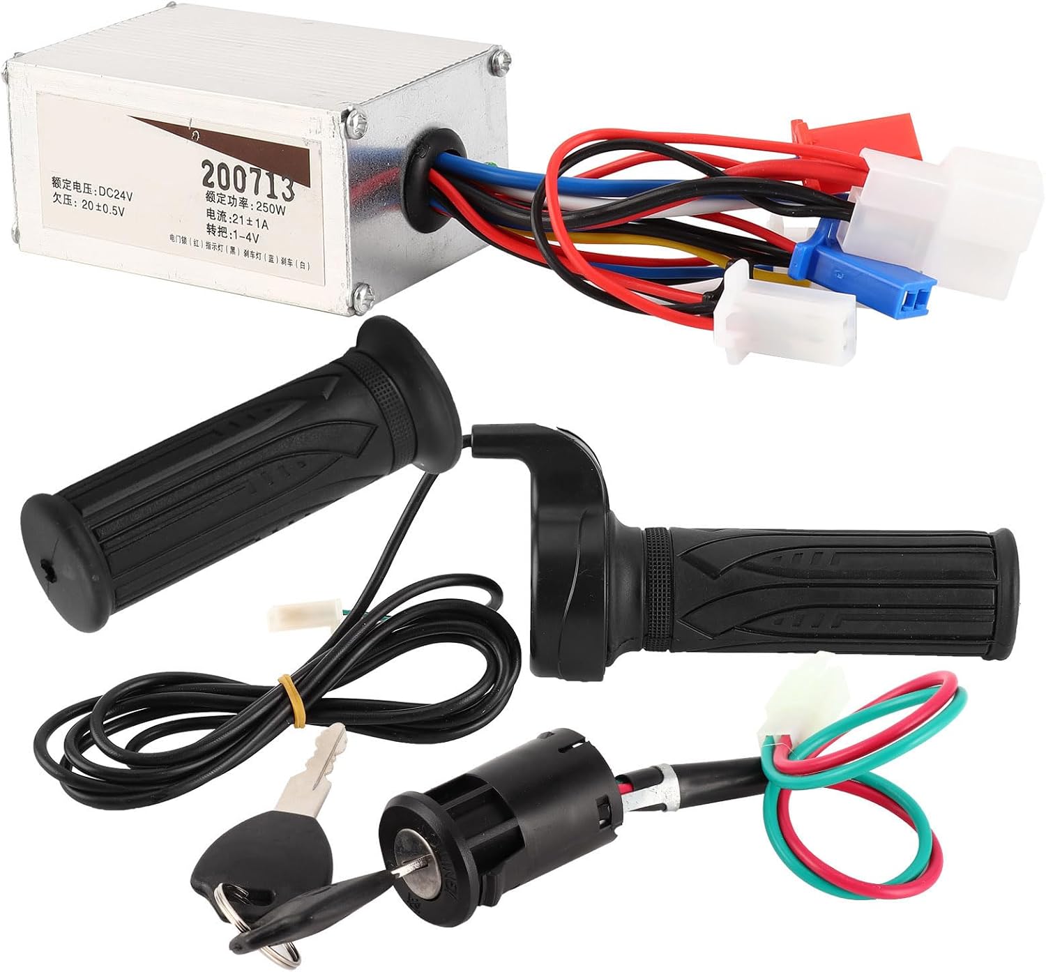 Ampiamente usato in vari modelli applicabili di biciclette elettriche, tricicli e scooter elettrici. L'impugnatura è realizzata in materiale di gomma morbida presa più confortevole e le mani non saranno stanche dopo il ciclismo a lungo termine. Regolatore di velocità, velocità stabile, sensibile alla frenata e al controllo dello sterzo, che funziona in modo fluido e silenzioso. Il guscio del controller è realizzato in lega di alluminio, che può proteggere il circuito interno, avere una buona dissipazione del calore ed evitare il sovraccarico termico. Spina del manubrio nella spina del manubrio del controller per realizzare la funzione di controllo della velocità del controller.