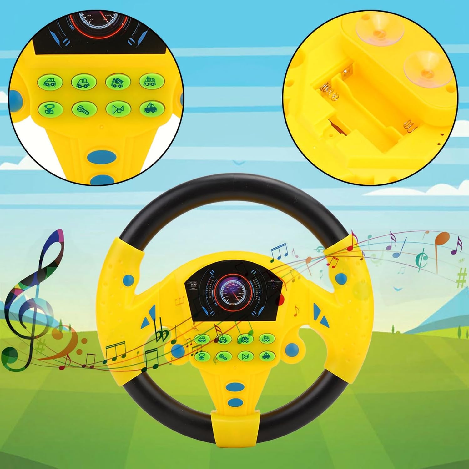 [Sviluppo musicale] Con musica dinamica unica, questo giocattolo aiuta a evidenziare il ritmo e coltivare il senso della musica di un bambino. [Ottimo gioco fantasioso] Questo volante interattivo con suoni è progettato per scatenare ore di creatività e fare finta di giocare per i bambini. [Design comodo] Dotato di una tazza di suzione, può essere facilmente attaccato a superfici lisce per divertimento di gioco sempre e ovunque. [Abilità uditiva migliorata] Gli effetti sonori dell'auto coinvolgono i bambini, rendendoli curiosi e interessati a migliorare le loro capacità uditive. [Sviluppo muscolare] con un elevato aspetto di imitazione, promuove lo sviluppo del movimento del corpo e stimola la crescita muscolare nei bambini.