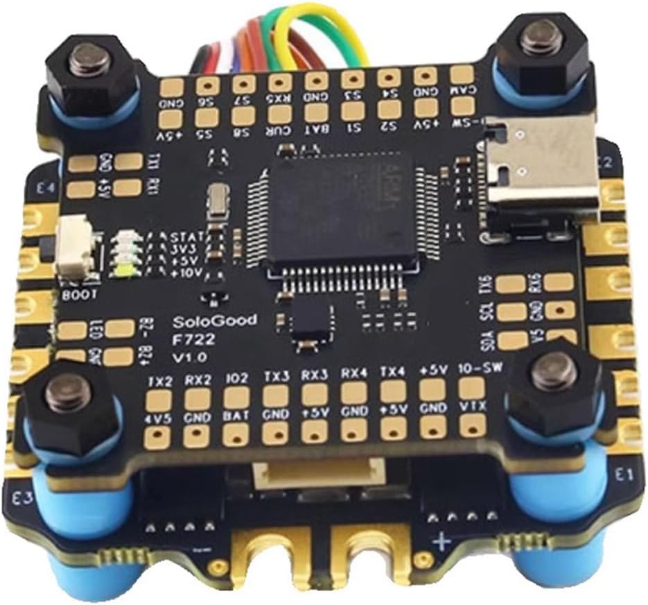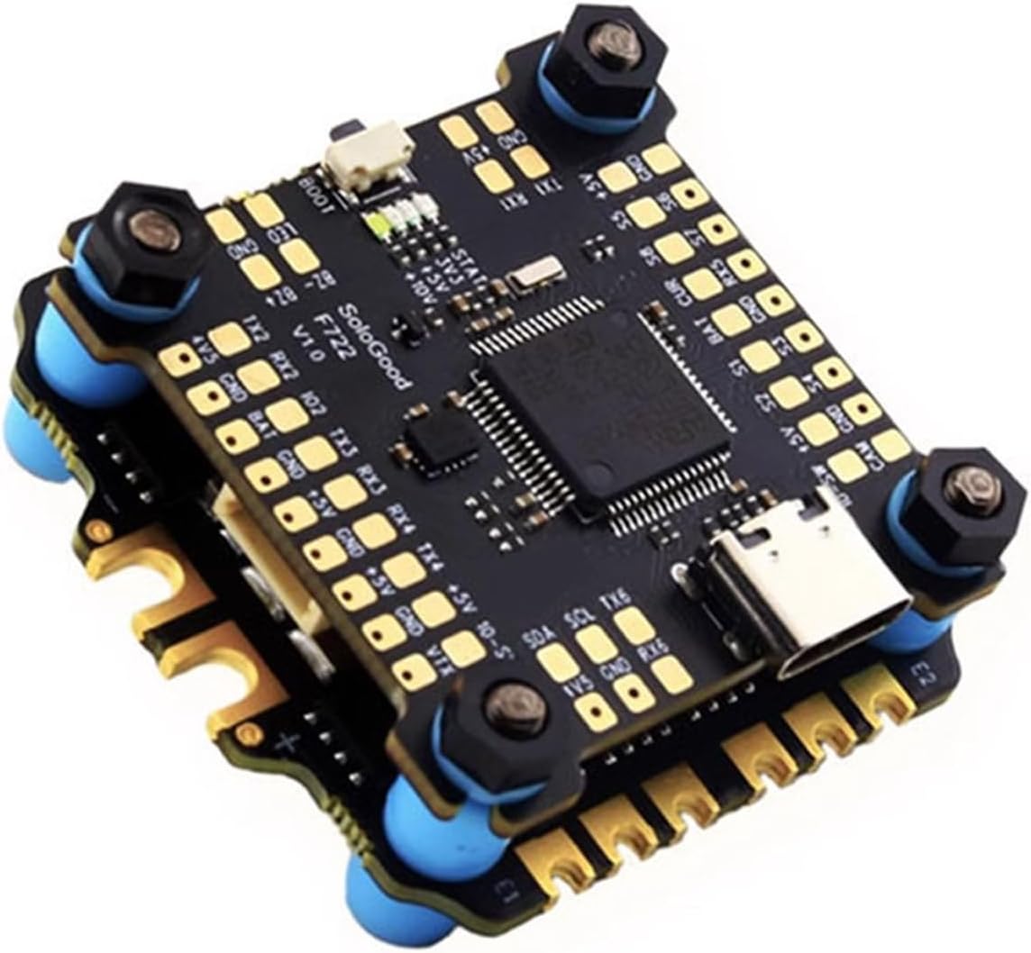 Dotato di barometro integrato e registrazione in scatola nera, questo controller di volo include quattro indicatori LED e grandi piastre di saldatura per gli appassionati principianti Ideale per costruttori di droni principianti e piloti che cercano ottimi controller di volo con funzionalità di ottimizzazione avanzate nel progetto di droni artigianali Questo controller di volo, progettato con transistor e supporto filtro, offre un controllo preciso per configurazioni di corse competitive Perfetto per manovre aeree o un ambiente complesso, garantisce durata nelle corse ad alta velocità e nelle riprese cinematografiche con droni Il controller di volo F722 è dotato di potenti sistemi di uscita del motore e 5 V/10 V BEC per costruzioni di droni stabili, gestione dell'alimentazione per prestazioni ottimizzate dei droni