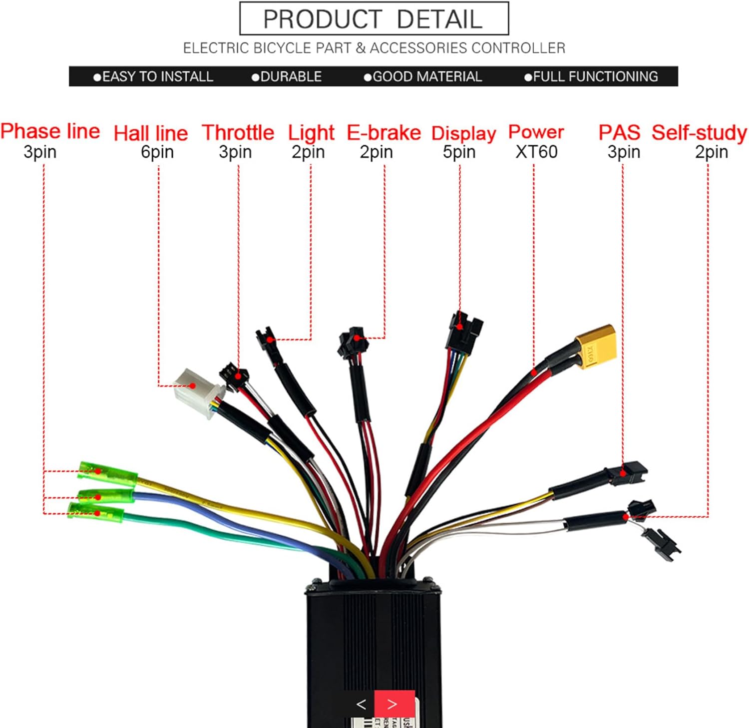 Funzionamento delle seno liscio: utilizza una tecnologia avanzata di sinusoidali per fornire prestazioni motorie più silenziose, più efficienti, riducendo il rumore e le vibrazioni migliorando l'esperienza di guida complessiva..Ciò garantisce un'accelerazione regolare e una durata del motore più lunga. Compatibilità ad ampio tensione: supporta sistemi 24 V, 36 V e 48 V, rendendolo altamente versatile e adatto a varie bici elettriche e scooter con diverse configurazioni della batteria..Ideale per gli utenti che desiderano aggiornare o sostituire i controller su più modelli Ebike. Elevata capacità di corrente: valutato a 30A, questo controller gestisce in modo efficiente le esigenze di potenza da 750 W a 1000 W motori senza spazzole, garantendo prestazioni affidabili anche su ripide colline o carichi pesanti senza surriscaldamento o gocce di potenza. Tre modalità regolabili: presenta tre modalità di guida che consentono la personalizzazione in base alle esigenze di velocità e di potenza, offrendo agli utenti il controllo flessibile per il pendolarismo, la guida fuoristrada o la crociera per risparmiare energia..Migliora il comfort del pilota e l'efficienza della batteria. Facile installazione: progettato con solidi componenti resistenti all'acqua e alla polvere, questo controller è ideale per tutte le condizioni meteorologiche..Il suo design compatto e il cablaggio chiaro rendono l'installazione semplice per gli utenti professionisti e fai -da -te.